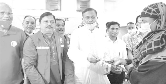 বাংলাদেশ রেড ক্রিসেন্ট সোসাইটি ও আইএফআরসির সহযোগিতায় রেড ক্রিসেন্ট চট্টগ্রাম জেলা ইউনিটের আওতায় গতকাল রাঙ্গুনীয়া পৌরসভা হলরুমে কোভিড-১৯ ক্ষতিগ্রস্ত অসহায়, দরিদ্র ও পঙ্গুদের মাঝে নগদ অর্থ বিতরণ করা হয়। বিতরণ অনুষ্ঠানে প্রধান অতিথি হিসেবে উপস্থিত ছিলেন তথ্য ও সম্প্রচার মন্ত্রী ড. হাছান মাহমুদ এমপি।