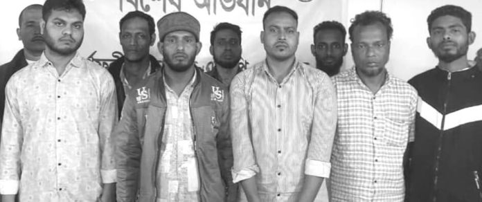 কর্ণফুলী থানার ভারপ্রাপ্ত কর্মকর্তা (ওসি) মো. শাহীনূর আলমের বরাতে থানার অপারেশন অফিসার নুরুল ইসলাম জানান, গত রোববার রাতের ঘটনা। গ্রেপ্তার ব্যক্তিরা হলেন, জহুর আহমদ (২৮), সকির আহমদ (৩৮), শহিদুল ইসলাম (৩৫), ফারুক আহমদ (৩২), কায়ছার উদ্দিন (৩০), মো. মিজান (৩৫), পেয়ার আহমদ (৩২), মো. রনি (৩০) এবং মো. ফারুক (৩৮)।