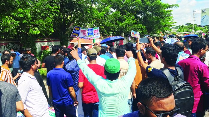 কর্ণফুলীতে সড়ক অবরোধ করে ইসলামী ব্যাংক কর্মীদের বিক্ষোভ