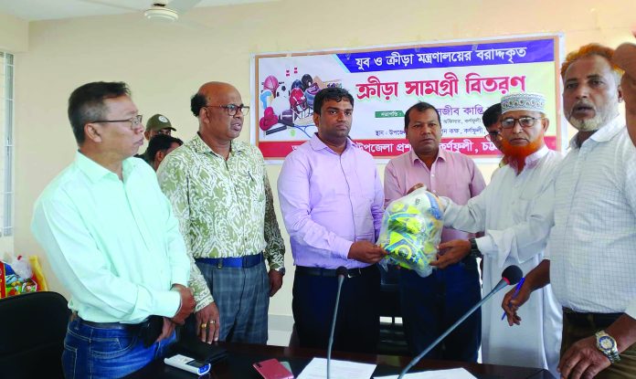 কর্ণফুলী উপজেলায় ২০টি শিক্ষা ও ক্রীড়া প্রতিষ্ঠানে ক্রীড়া সামগ্রী বিতরণ করা হয়েছে। গতকাল মঙ্গলবার উপজেলা মিলনায়তনে যুব ও ক্রীড়া মন্ত্রণালয়ের বরাদ্দকৃত এসব ক্রীড়া সামগ্রী বিতরণ করেন উপজেলা নির্বাহী অফিসার সজীব কান্তি রুদ্র। যার মধ্যে আছে ৬ টি হাইস্কুল, ৭টি প্রাথমিক বিদ্যালয়, ৩টি মাদ্রাসা ও ৪টি ক্লাব। এসময় উপজেলা নির্বাহী অফিসার সজীব কান্তি রুদ্র পড়াশোনার পাশাপাশি খেলাধুলার মানোন্নয়নের জন্য স্কুল শিক্ষকগণকে পরামর্শ প্রদান করেন। ভবিষ্যতে আরো অধিক পরিমাণে ক্রীড়া সামগ্রী বিতরণের আশ্বাস প্রদান করেন তিনি। অনুষ্ঠানে অন্যান্যের মধ্যে উপস্থিত ছিলেন উপজেলা মাধ্যমিক শিক্ষা অফিসার বাবুল চন্দ্র নাথ, উপজেলা শিক্ষা অফিসার ও উপজেলা যুব উন্নয়ন অফিসার সাবের আহাম্মদ। এছাড়া উপজেলা ক্রীড়া সংস্থার এড হক কমিটির সদস্য মো. লোকমান, নুরুল আমিন মিন্টু, মো. সাহেদ, মো. বাহার হোসেন খান ও মো. জাবেদ উপস্থিত ছিলেন।