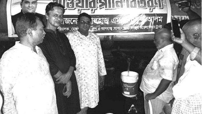 তীব্র খড়ায় প্রচন্ড তাপদাহে অতিষ্ট উত্তর কাট্টলীবাসীর বিশুদ্ধ পানির চাহিদা পূরণে পাশে দাঁড়ালেন চসিক সাবেক মেয়র আলহাজ্ব মোহাম্মদ মনজুর আলম। আলহাজ্ব মোস্তফা হাকিম ওয়েলফেয়ার ফাউন্ডেশন ও আলহাজ্ব হোছনে আরা মনজুর ওয়েলফেয়ার ট্রাস্টের উদ্যোগে বিশুদ্ধ পানি সরবরাহ প্রকল্পের আওতায় গতকাল সোমবার ট্রাস্টের পরিচালক আলহাজ্ব মোহাম্মদ সাইফুল আলম সাবেক মেয়র আলহাজ্ব মোহাম্মদ মনজুর আলমের পক্ষে চট্টগ্রাম ওয়াসা থেকে দুই ভাউচার বিশুদ্ধ পানি ক্রয় করে বিনামূল্যে ঘরে ঘরে পৌঁছে দেন। এ সময় মোহাম্মদ সাইফুল আলম বলেন, আমার পিতা মানবসেবার ব্রত নিয়ে মানুষের দুর্যোগ–দুর্বিপাকে পাশে থাকেন। চলমান তীব্র তাপদহে মানুষ এখন অতিষ্ট। মাটির নিচের পানির স্তর আরো নিচে নেমে যাওয়ায় ডিপটিউবওয়েল থেকে মানুষ পানি পাচ্ছে না। জীবন রক্ষায় আমরা মানুষের পাশে আছি। এ কার্যক্রমে তিনি এলাকাবাসীর সহযোগিতা কামনা করেন। এ সময় আকবর শাহ থানা আওয়ামী লীগের সহ–সভাপতি লোকমান আলী, সাবেক উপাধ্যক্ষ বাদশা আলম, মাসুদুল আলম, সাঈদ রাব্বী, রেজাউল হাসান চৌধুরী উপস্থিত ছিলেন। প্রেস বিজ্ঞপ্তি।