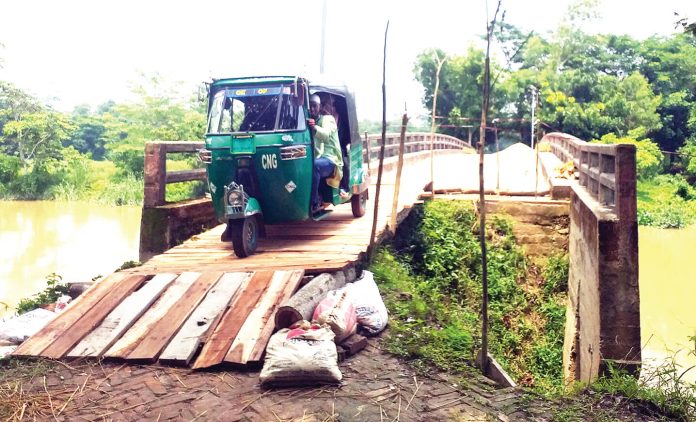 জানা যায়, ২০০৯ সালে স্থানীয় সরকার প্রকৌশল বিভাগের প্রকল্পে খালের উপর এই সেতু নির্মাণ করা হয়েছিল। গত তিন বছর আগে সৃষ্ট বন্যার পানির স্রোতে সেতুটির গোড়ার মাটি ধসে যায়। সেই থেকে এলাকার মানুষ ঝুঁকি নিয়ে এই পথে চলাচল করছে।