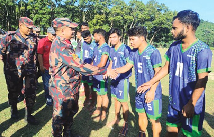 কাপ্তাইয়ে শেখ রাসেল মিনি স্টেডিয়ামে ওয়াগ্গাছড়া জোন গোল্ডকাপ ফুটবল টুর্নামেন্টের উদ্বোধন হয়েছে। ৪১ বিজিবি কাপ্তাই ব্যাটালিয়ন ওয়াগ্গাছড়া জোন কমান্ডার লেঃ কর্ণেল মো. আমীর হোসেন মোল্লা প্রধান অতিথি হিসেবে টুর্নামেন্টের উদ্বোধন করেন। অনুষ্ঠানে বিশেষ অতিথি ছিলেন ওয়াগ্গাছড়া জোনের উপ–অধিনায়ক মেজর লতিফুল বারী, কাপ্তাই ব্যাটালিয়নের মেকিকেল অফিসার ক্যাপ্টেন ডা. সুষ্মিত শোভন দাশ, রাঙ্গামাটি জেলা পরিষদের সদস্য অংসুইছাইন চৌধুরী, কাপ্তাই উপজেলা চেয়ারম্যান মো. মফিজুল হক, উপজেলা নির্বাহী অফিসার মো. মহিউদ্দিন, কাপ্তাই থানার ওসি মো. জসিম উদ্দিন, উপজেলা ক্রীড়া সংস্থার সাধারন সম্পাদক বিদর্শন বড়ুয়া, প্রধান শিক্ষক মাহবুব হাসান বাবু, কাপ্তাই প্রেসক্লাবের সভাপতি কাজী মোশাররফ হোসেন, উপজেলা শিল্পকলা একাডেমির সাধারন সম্পাদক ঝুলন দত্ত, হেডম্যান উবাথোয়াই চৌধুরী এবং হেডম্যান সানুচিং মারমা। উদ্বোধনী খেলায় ৩২২ নং নারনগিরি মৌজা এবং ৩২৬ নং পেকুয়া মৌজার খেলা গোল শূন্য ড্র হয়। খেলা শুরুর পূর্বে প্রধান অতিথি লেঃ কর্নেল মো. আমীর হোসেন মোল্লা উভয় দলের খেলোয়াড়দের সাথে পরিচিত হন। খেলা পরিচালনা করেন ৪১ বিজিবির হাবিলদার মনিরুল ইসলাম। সহযোগিতায় ছিলেন সৌনিক মো. হাবিবুর রহমান এবং মো. মুরাদ হোসেন। উদ্বোধনী দিনে নারানগিরি মৌজার মো. ইমন এবং পেকুয়া মৌজার পুসিমং মারমাকে সেরা খেলোয়াড় হিসেবে ঘোষণা করা হয়। এই টুর্নামেন্টের অন্য দলগুলো হলো ওয়াগ্গা মৌজা, রাইখালী মৌজা, ভার্য্যাতলী মৌজা এবং চিৎমরম মৌজা।