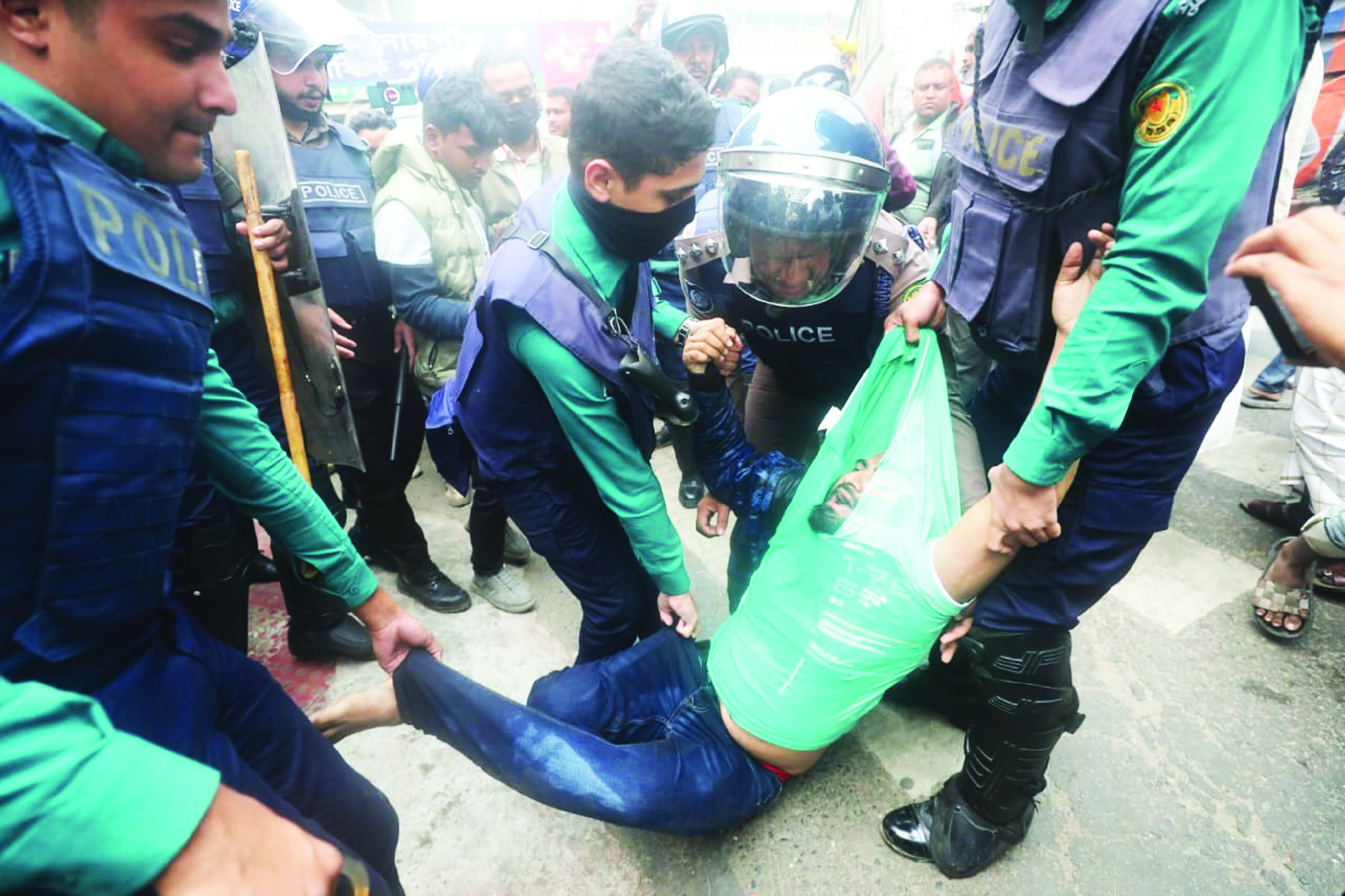 ঢাকা মহানগর পুলিশের তেজগাঁও বিভাগের অতিরিক্ত উপ কমিশনার ফজলুল করিম বলেন, ‘আমরা সাউণ্ড গ্রেনেড ছুড়ে তাদের ছত্রভঙ্গ করে দিয়েছি।’ এ সময় সেখান থেকে কয়েকজনকে পুলিশের প্রিজন ভ্যানে তুলে নিতে দেখা যায়। কিছু সময়ের জন্য কারওয়ান বাজার মোড় হয়ে যানবাহন চলাচল বিঘ্নিত হয়। পরে ঘটনাস্থলে সেনাবাহিনীর সদস্যদের অবস্থান নিতে দেখা যায়। এখানে মূলত বসুন্ধরা শপিং কমপ্লেক্স ও হাতিরপুলের মোতালেব প্লাজার মোবাইল ব্যবসায়ীরা বিক্ষোভ করছিলেন। ধাওয়া খেয়ে বিক্ষোভকারীদের একাংশ বসুন্ধরা মার্কেটে ঢুকে পড়ে। আরেক অংশ যায় হাতিরপুলের দিকে।
