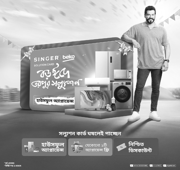 ঈদুল আযহার আনন্দকে আরও বাড়িয়ে দিতে সিঙ্গার–বেকো নিয়ে এলো বহুল প্রতীক্ষিত ভরপুর সল্যুশন অফার ক্যাম্পেইন। এই ক্যাম্পেইনের আওতায় দেশব্যাপী গ্রাহকরা পাচ্ছেন হাজার হাজার ফ্রি পণ্য আর আকর্ষণীয় ডিসকাউন্ট পাবার সুযোগ। যেকোনো সিঙ্গার–বেকো স্টোর থেকে কেনাকাটা করলেই গ্রাহকরা পাবেন একটি সলিউশন কার্ড। সল্যুশন কার্ড ঘষে গ্রাহকরা জিতে নিতে পারেন হাউসফুল অ্যাপ্লায়েন্স। হাউসফুল অ্যাপ্লায়েন্সে থাকছে গৃহস্থালির প্রয়োজনীয় সব পণ্যের একটি কমপ্লিট সেট– যার মধ্যে রয়েছে টেলিভিশন, রেফ্রিজারেটর, এয়ার কন্ডিশনার, ওয়াশিং মেশিন, মাইক্রোওয়েভ ওভেন, গ্রাইন্ডার এবং গ্যাস বার্নার।