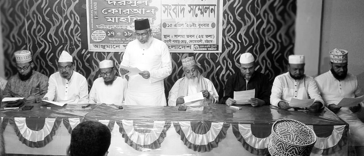 আঞ্জুমানে খুদ্দামুন নাস বাংলাদেশের উদ্যোগে গতকাল বুধবার মোমিন রোডস্থ সালমা ভবনে আগামীকাল শুক্রবার ও ১৮ এপ্রিল জমিয়তুল ফালাহ মসজিদ ময়দানে অনুষ্ঠিতব্য ২ দিনব্যাপী পবিত্র দরসুল কোরআন মাহফিল সফলকল্পে সংবাদ সম্মেলন অনুষ্ঠিত হয়। এতে লিখিত বক্তব্য পাঠ করেন দরসুল কোরআন মাহফিল প্রস্তুতি কমিটির সচিব মাওলানা মুহাম্মদ ওয়াহেদ মুরাদ। সাংবাদিকদের বিভিন্ন প্রশ্নের উত্তর দেন–একেএনবি বোর্ড অব ট্রাস্টিজের সদস্য অধ্যক্ষ এস এম ফরিদ উদ্দীন। উপস্থিত ছিলেন–একেএনবি বোর্ড অব ট্রাস্টিজের চেয়ারম্যান কাজী মুহাম্মদ জসিম উদ্দিন, কলামিস্ট অধ্যক্ষ এম ইব্রাহীম আখতারী, এস এম আবদুল করিম তারেক, মাওলানা এ এম মঈন উদ্দিন চৌধুরী হালিম, এস এম শওকত আজিজ, এইচ এম নাছির উদ্দীন, মাওলানা মাসুদ করিম চৌধুরী, শাহজাদা মঈন উদ্দিন সনজরী, মাওলানা জিয়াউল হক বিপ্লবী। সাফল্যের ধারাবাহিকতায় এবারকার মাহফিল ২৩ তম বর্ষে পদার্পণ করেছে। আগামীকাল শুক্রবার ও ১৮ এপ্রিল বিকেল ২টায় জমিয়তুল ফালাহ মসজিদ ময়দানে ২৩তম পবিত্র দরসুল কোরআন মাহফিল অনুষ্ঠিত হবে। ১ম দিবস বিকেল ৩টা মহিলাদের জন্য পর্দা সহকারে মাহফিল শোনার জন্য ব্যবস্থা রাখা হয়েছে। পাশাপাশি শিশুদের মেধা ও মননশীলতা বিকাশে আগামী ১৮ এপ্রিল সকাল ৮ টায় রয়েছে শিশু কিশোর সমাবেশ ও সাংস্কৃতিক অনুষ্ঠান। এরপর বেলা ২টা থেকে শুরু হবে মূল দরস। প্রেস বিজ্ঞপ্তি।