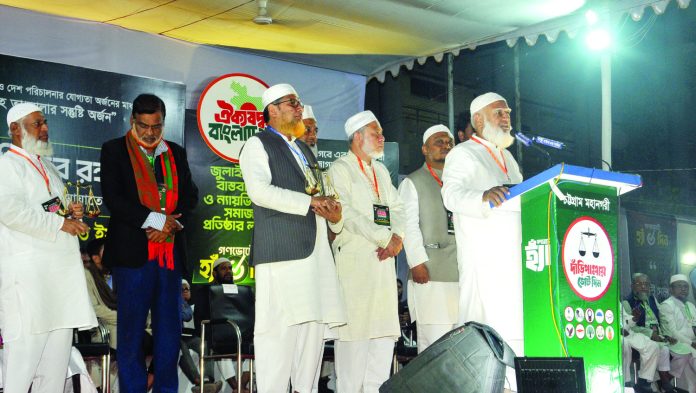 তিনি বলেন, সবচেয়ে নির্যাতিত দল জামায়তে ইসলামী ধৈর্য ধরলো। দেশের শান্তি–শৃঙ্খলা ফিরিয়ে আনতে সাহায্য করল, শহীদ পরিবারের কাছে দৌড়ে গিয়ে হাজির হলো, আহত পঙ্গুদের পাশে গিয়ে সান্ত্বনা যোগাল, বন্যা কবলিত মানুষের পাশে গিয়ে দাঁড়ালো। আর সেই জায়গায় একদল চাঁদাবাজিতে ঝাপাইয়া পড়ল। আমি পার্সোনালি তাদের এখানকার শীর্ষ নেতাদেরকে নিয়ে বসে হাতে ধরে বলেছি, দোহায় আল্লাহ’র–আমরা সবাই মজলুম ছিলাম, মেহেরবানি করে এখন জালেম হবেন না, মানুষকে কষ্ট দেবেন না, চাঁদাবাজি বন্ধ করুন, অমুক–তমুকের সাম্রাজ্যের পাহারাদারি বন্ধ করুন। এখানে ওখানে বিভিন্ন জায়গার দখলদারি শুরু হয়ে গেল, এই দখলদারি করতে গিয়ে নিজেদের ২৩৪ জন মানুষকে নিজেরাই মেরে ফেলল।