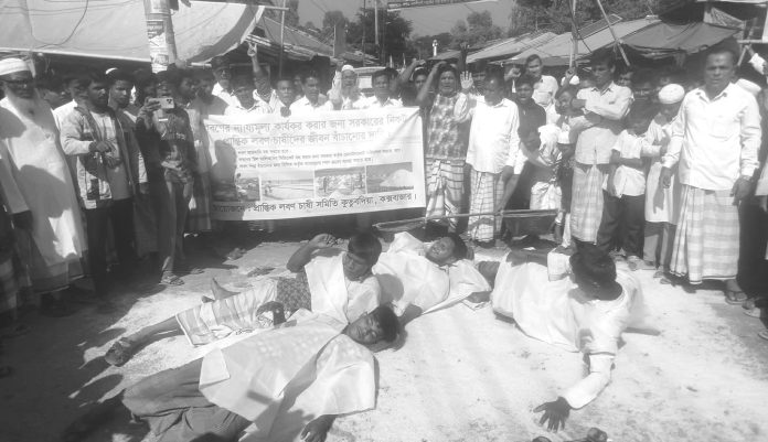 কক্সবাজারের কুতুবদিয়ায় লবণের ন্যায্যমূল্য নিশ্চিত, আমদানি বন্ধ ও মিল মালিকদের সিন্ডিকেট বন্ধ করার দাবিতে কাফনের কাপড় পরে মানববন্ধন করেছে লবণচাষিরা। মানববন্ধনের পর চাষিরা সড়কে লবণ ফেলে প্রতিবাদ জানান। গতকাল সোমবার সকাল থেকে দুপুর পর্যন্ত প্রান্তিক লবণ চাষি সমিতি কুতুবদিয়ার ব্যানারে লবণ মাঠে আয়োজিত মানববন্ধনে অনেকেই কাফনের কাপড় পরে অংশ নেন। এ সময় লবণচাষিরা বলেন, বর্তমানে মাঠ পর্যায়ের প্রান্তিক চাষিরা মন প্রতি লবণের মূল্য পাচ্ছেন ১২০ থেকে ১৪০ টাকা। অথচ উৎপাদন খরচ পড়ছে ৩০০ থেকে ৩৫০ টাকা। এতে প্রান্তিক চাষিদের পথে বসার উপক্রম হয়েছে। চাষে আগ্রহ হারাচ্ছেন অনেক চাষি। মাঠ পর্যায়ে প্রতি কেজি লবণের দাম মাত্র ৩ থেকে সাড়ে ৩ টাকা পাচ্ছেন উল্লেখ করে চাষিরা বলেন, সেই লবণ পরিশোধনের পর বাজারে বিক্রি হচ্ছে প্রতি কেজি ৪৫ টাকা।