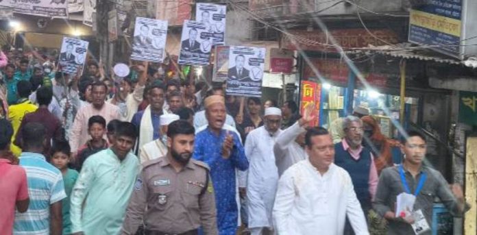 ৩৯ নম্বর দক্ষিণ হালিশহর ওয়ার্ডে গণসংযোগকালে জাপা প্রার্থী আবু তাহের