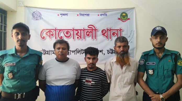 গ্রেপ্তার তিনজন হলেন – কুমিল্লা জেলার তিতাস থানার মোঃ আনোয়ার (২৭), চট্টগ্রাম নগরীর সদরঘাট থানার মোঃ হৃদয় (২৭) এবং কুমিল্লা মুরাদনগর থানার আকতার হোসেন (৩০)। বর্তমানে তারা তিনজনেই চট্টগ্রাম নগরীর বিভিন্ন এলাকায় ভাড়া বাসায় বসবাস করেন।