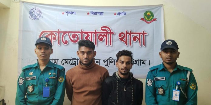 গোপন সংবাদের ভিত্তিতে এসআই আব্দুল্লাহ আল নোমান সঙ্গীয় ফোর্সসহ কোতোয়ালী থানা এলাকায় অভিযান চালিয়ে মো. বায়েজীদ (২৭) ও মোহাম্মদ আরিফ (২৪) নামে তাদের গ্রেপ্তার করে পুলিশ।