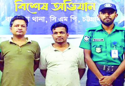 নগরীর কোতোয়ালী থানা এলাকায় অভিযান চালিয়ে ১০ বছরের সশ্রম কারাদণ্ডপ্রাপ্ত দুই আসামিকে গ্রেপ্তার করেছে পুলিশ। গত রোববার দিবাগত রাতে এ ঘটনা ঘটে। গ্রেপ্তাররা হলেন নগরীর বাকলিয়া থানার মিয়াখান নগর ডাইল বাড়ির মহসিন খানের ছেলে মো. মানিক খান ও একই এলাকার বিসমিল্লাহ কলোনির মো. সিরাজের ছেলে মো. ইউনুছ। বাকলিয়া থানার এসআই মোবারক হোসেন জানান, গোপন সংবাদের ভিত্তিতে রোববার দিবাগত রাতে নগরীর কোতোয়ালী থেকে মো. মানিক খানকে গ্রেপ্তার করা হয়। পরে চান্দগাঁও এলাকায় অভিযান চালিয়ে মো. ইউনুছকে গ্রেপ্তার করা হয়। তাদের বিরুদ্ধে পটিয়া থানার মামলায় দণ্ডবিধির ৩৯৪ ধারায় ১০ বছরের সশ্রম কারাদণ্ড এবং ১০ হাজার টাকা জরিমানা, অনাদায়ে আরও ৬ মাস বিনাশ্রম কারাদণ্ডের আদেশ রয়েছে। আসামিদের আদালতে সোপর্দ করা হয়েছে।