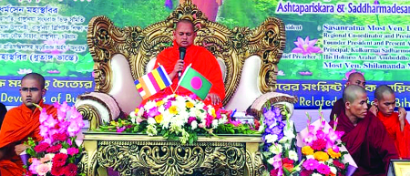 রাঙ্গুনিয়ার বুদ্ধ মহাধাতু চৈত্যসহ ৩৬টি বিহার ও কুঠিরের প্রতিষ্ঠাতা ও পরিচালক শীলানন্দ মহাস্থবির প্রকাশ ধুতাঙ্গ ভান্তে বলেছেন, মৈত্রীর দ্বারা ক্রোধকে জয় করতে হবে, সাধুতার দ্বারা অসাধুকে জয় করবে। রাঙ্গুনিয়ায় বুদ্ধ মহাধাতু চৈত্যে বুদ্ধ প্রতিবিম্ব, অষ্টপরিস্কার ও সংঘদান অনুষ্ঠান গত সোমবার অনুষ্ঠিত হয়েছে। আঞ্চলিক সংঘনায়ক ও রাঙ্গুনিয়া সংঘরাজ ভিক্ষু সমিতির সভাপতি ধর্মসেন মহাস্থবিরের অনুষ্ঠানে সভাপতিত্ব করেন। এতে প্রধান অতিথি ছিলেন রাঙ্গুনিয়া উপজেলা পরিষদের চেয়ারম্যান বীর মুক্তিযোদ্ধা স্বজন কুমার তালুকদার। উদ্বোধনী বক্তব্য দেন অনুষ্ঠানের প্রধান সমন্বয়কারী অঞ্জন কুমার বড়ুয়া। বিশেষ অতিথি ছিলেন পার্বত্য উন্নয়ন বোর্ডের চেয়ারম্যান নিখিল রনজন চাকমার স্ত্রী রীপা চাকমা, খাগড়াছড়ি জেলা পরিষদের সদস্য কল্যাণ মিত্র বড়ুয়া, নিলুৎফল খীসা, উদযাপন পরিষদের সভাপতি দীপঙ্কর বড়ুয়া, সাধারণ সম্পাদক প্রদ্যুত বড়ুয়া টাবু, সদস্য পূর্ণ চন্দ্র মুৎসুদ্দি প্রমুখ। প্রেস বিজ্ঞপ্তি।