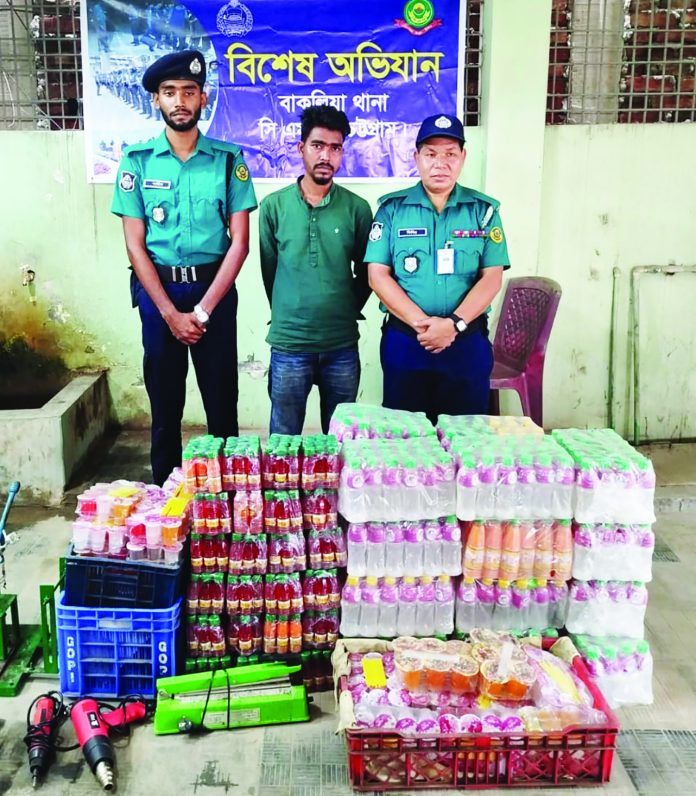 পুলিশ জানায়, নতুন ব্রিজ আনসার প্লটের খালেদার মা’র কলোনিতে একটি বাসা ভাড়া নিয়ে নকল জুস তৈরির কারখানা গড়ে তোলা হয়। কারখানার বৈধ কোনো কাজগপত্র না থাকলেও ওই বাড়িতে ক্ষতিকর কেমিক্যাল মিশিয়ে বিভিন্ন জুস তৈরি হচ্ছিল। পরে তা নগরীর বিভিন্ন এলাকায় বিক্রি করা হচ্ছিল।