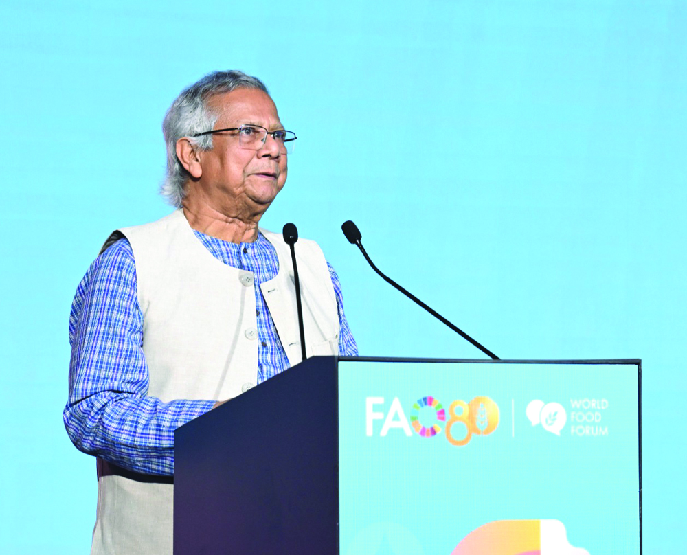 গতকাল সোমবার ইতালির রোমে জাতিসংঘের খাদ্য ও কৃষি সংস্থার (এফএও) সদর দপ্তরে আয়োজিত বিশ্ব খাদ্য ফোরাম (ডব্লিউএফএফ) ২০২৫এর উদ্বোধনী অনুষ্ঠানের মূল বক্তব্যে তিনি এ কথা বলেন। এর আগে এফএওর সদর দপ্তরে পৌঁছালে প্রধান উপদেষ্টাকে উষ্ণ অভ্যর্থনা জানানো হয়। প্রধান উপদেষ্টার প্রেস উইং জানায়, এফএও সদর দপ্তরে পৌঁছালে প্রফেসর ইউনূসকে স্বাগত জানান জাতিসংঘের খাদ্য ও কৃষি সংস্থার মহাপরিচালক কু ডংইউ। খবর বাসস ও বিডিনিউজের।