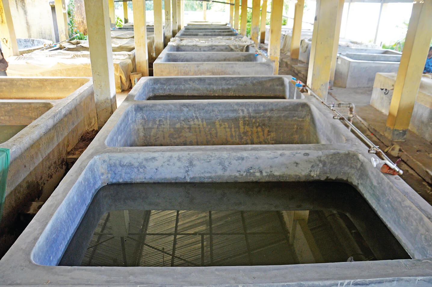 সংশ্লিষ্ট সূত্র জানায়, মদুনাঘাটের বড়ুয়া পাড়ার সরকারি হ্যাচারিতে তিনটি গোলাকার এবং ১১টি চার কোণার কুয়া রয়েছে। এছাড়া প্লাস্টিকের কুয়া রয়েছে ১০টি। শাহ মাদারী হ্যাচারিতে চার কোণ কুয়া রয়েছে ৪৫টি, মাছুয়াঘোনা হ্যাচারিতে চার কোণ কুয়া ৪৫টি এবং প্লাস্টিকের কুয়া রয়েছে ৩টি। পশ্চিম গহিরা হ্যাচারি এবং কাগতিয়া হ্যাচারি পরিত্যক্ত। এর কোনো কুয়াতেই ডিম ফোটানো হয় না। মোবারকখীল হ্যাচারিতে গোলাকার কুয়া রয়েছে ৬টি এবং চার কোণা কুয়া রয়েছে ১০টি। বেসরকারি হ্যাচারিটিতে চার কোণা কুয়া রয়েছে ১০টি এবং গোলাকার কুয়া রয়েছে ৬টি। একেকটি কুয়ায় চার থেকে ছয় বালতি বা ৬০ থেকে ৮০ কেজি ডিম দেওয়া যায়। ডিমের মানের উপর প্রতি ৪০ থেকে ৬০ কেজিতে এক কেজি রেণু উৎপাদিত হয়। এক কেজি রেণুতে গড়ে আড়াই লক্ষ পোনা থাকে। এক বছরের ব্যবধানে এর দাম দাঁড়ায় ৪-৫ কোটি টাকা। কিন্তু এবার প্রেক্ষাপট ভিন্ন হয়ে গেছে। শুধুমাত্র মিঠা পানির অভাবে দুই-তিন হাজার কেজি ডিম নষ্ট হয়ে গেছে।