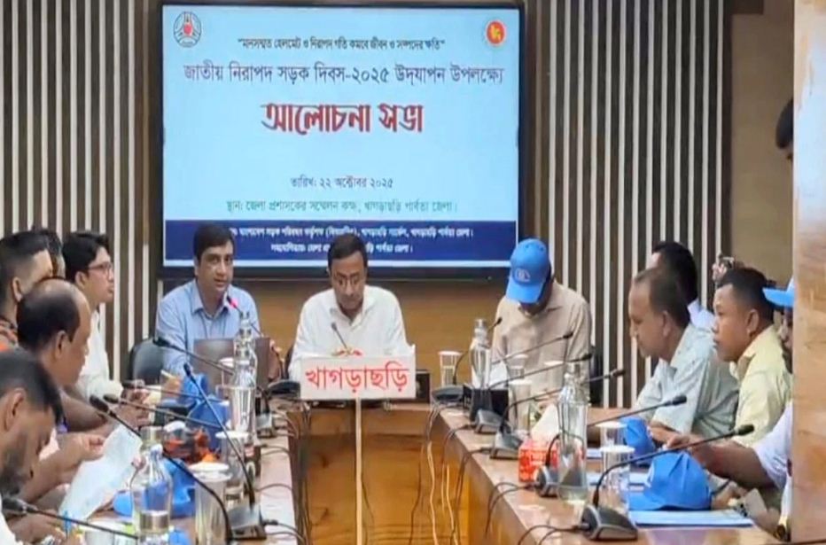 মানসম্মত হেলমেট ও নিরাপদ গতি, কমাবে জীবন ও সম্পদের ক্ষতি’ এ প্রতিপাদ্যকে সামনে রেখে খাগড়াছড়িতে জাতীয় নিরাপদ সড়ক দিবস উপলক্ষে র‌্যালি ও আলোচনা সভা গতকাল বুধবার বাংলাদেশ সড়ক পরিবহন কর্তৃপক্ষের আয়োজনে অনুষ্ঠিত হয়। এ উপলক্ষে জেলা প্রশাসকের কার্যালয়ের সামনে থেকে এক র‌্যালি শুরু হয়ে বিভিন্ন সড়ক প্রদক্ষিন করে সম্মেলন কক্ষে এসে আলোচনা সভা করেন। অনুষ্ঠানে অতিরিক্ত জেলা প্রশাসক হাসান মারুফের সভাপতিত্বে এতে প্রধান অতিথি ছিলেন জেলা প্রশাসক এ বি এম ইফতেখারুল ইসলাম খন্দকার। এসময় খাগড়াছড়ি সড়ক ও জনপদ বিভাগের নির্বাহী প্রকৌশলী মাকসুদুর রহমান, বিআরটিএ খাগড়াছড়ি সার্কেলের সহকারী পরিচালক মোহাম্মদ মুছাসহ বিভিন্ন সরকারিবেসরকারি প্রতিষ্ঠানের কর্মকর্তা, কর্মচারী, শিক্ষার্থী ও সাধারণ মানুষ অংশগ্রহণ করেন। এসময় বক্তারা খাগড়াছড়িতে পাহাড়ি সড়ক দুর্ঘটনা রোধে ফিটনেসবিহীন যানবাহন চলাচলে কঠোর নিয়ন্ত্রণ আরোপ, সরু সড়কের সমপ্রসারণ এবং সড়কের বাঁক কমানোর দাবি জানিয়েছে। ড্রাইভিং লাইন্সেস ছাড়া গাড়ি চালানো বন্ধ, দুর্ঘটনা রোধে চাঁন্দের গাড়িগুলোর মানোন্নয়ন এবং ট্রাফিক আইন মেনে চলার অনুরোধ জানিয়েছে। এসময় উপস্থিত ছিলেন পরিবহন মালিক ও শ্রমিকেরা।