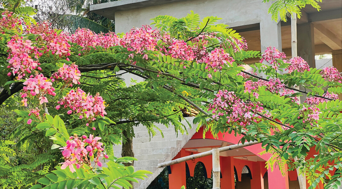 বৈশাখের তপ্ত দুপুরে প্রকৃতিতে মুগ্ধতা ছড়াচ্ছে রঙিন ফুল। কৃষ্ণচূড়া, সোনালু আর জারুলের ভিড়ে এখন আলাদা করে দৃষ্টি কাড়ছে ‘লাল সোনাইল’। নামের সঙ্গে ‘লাল’ থাকলেও এই ফুলে ফুটে ওঠে কোমল গোলাপি আভা, যা দূর থেকেই পথচারীদের বিমোহিত করে। খাগড়াছড়ি–চট্টগ্রাম মহাসড়কের জিরো পয়েন্ট এলাকা পার হলেই চোখে পড়ে হর্টিকালচার পার্কের বিপরীতে অপরাজিতা বৌদ্ধবিহারের সীমানাঘেঁষে দাঁড়িয়ে থাকা গাছটি। ছাতার মতো বিস্তৃত ডালপালায় এখন থোকা থোকা গোলাপি ফুল। উদ্ভিদটির বৈজ্ঞানিক নাম ঈধংংরধ লধাধহরপধ, যা অনেকের কাছে ‘পিংক কাসিয়া’ বা ‘পিংক শাওয়ার’ নামে পরিচিত।