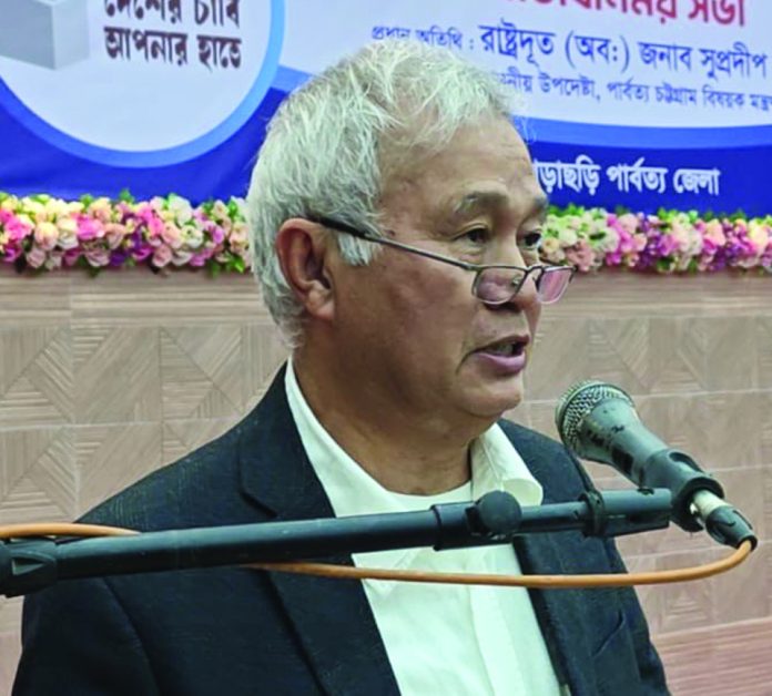 ‘‘গণভোট ২০২৬ সংসদ নির্বাচন দেশের চাবি আপনার হাতে” এই প্রতিপাদ্য বিষয়টিকে সামনে রেখে খাগড়াছড়িতে গণভোটের প্রচার ও ভোটার উদ্বুদ্ধকরণের উদ্দেশ্যে মতবিনিময় সভা অনুষ্ঠিত হয়েছে। গতকাল শুক্রবার বিকেলে খাগড়াছড়ি পৌর টাউন হল সম্মেলন কক্ষে খাগড়াছড়ি জেলা প্রশাসনের আয়োজনে মতবিনিময় সভায় প্রধান অতিথি হিসেবে উপস্থিত ছিলেন পার্বত্য চট্টগ্রাম বিষয়ক মন্ত্রণালয়ের পার্বত্য উপদেষ্টা সুপ্রদীপ চাকমা।