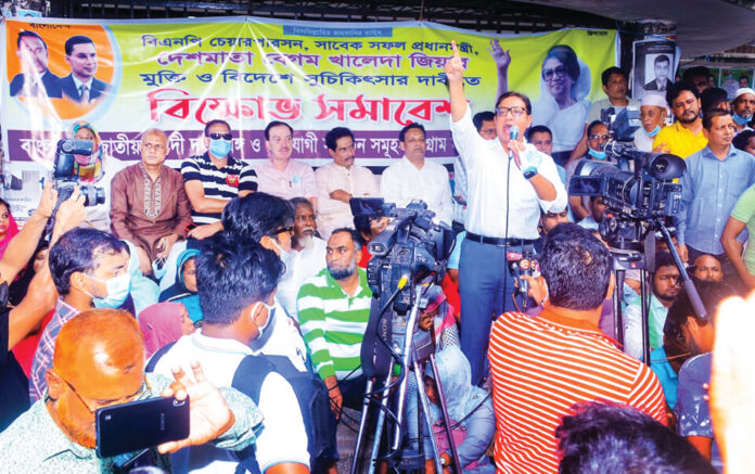 নগর বিএনপির সমাবেশ : নগর বিএনপির উদ্যোগে আয়োজিত সমাবেশে সংগঠনের আহ্বায়ক ডা. শাহাদাত হোসেন বলেন, দেশ ও জনগণকে রক্ষা করতে হলে এবং গণতন্ত্রের অধিকার ফিরিয়ে আনতে হলে আমাদের বাতিঘর বেগম খালেদা জিয়াকে মুক্ত করতে হবে। দেশে আইনের শাসন থাকলে খালেদা জিয়া এমনিতেই জামিন পেতেন। ফৌজদারি কার্যবিধির ৪০১ ধারায় সরকার খালেদা জিয়াকে মুক্তি দিয়ে বিদেশে চিকিৎসার ব্যবস্থা করতে পারে। আইনমন্ত্রী যে ব্যাখ্যা দিচ্ছেন তা মিথ্যা অপব্যাখ্যা। কারণ ২০০৮ সালে আওয়ামী লীগ ক্ষমতায় আসার পর থেকে এ পর্যন্ত ৩০ জনেরও বেশি ফাঁসির দণ্ডপ্রাপ্ত আসামির সাজা মওকুফ করেছে।
