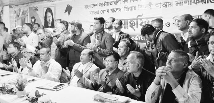 উত্তর সাতকানিয়া বিএনপি: প্রতিনিধি জানান, সাতকানিয়ায় সাবেক প্রধানমন্ত্রী বেগম খালেদা জিয়ার আত্মার মাগফেরাত কামনায় দোয়া মাহফিল ও আলোচনা সভা গত মঙ্গলবার অনুষ্ঠিত হয়। উত্তর সাতকানিয়া বিএনপির উদ্যোগে কেরানীহাটের একটি কমিউনিটি সেন্টারে এ দোয়া মাহফিল ও আলোচনা সভায় প্রধান অতিথি ছিলেন দক্ষিণ জেলা বিএনপির যুগ্ম আহবায়ক মুজিবুর রহমান মুজিব। চট্টগ্রাম–১৪ আসনের বিএনপি মনোনীত প্রার্থী জসীম উদ্দীন আহমেদের সভাপতিত্বে ও সাতকানিয়া উপজেলা যুবদলের সাবেক সভাপতি ফরিদুল আলম ফরিদের সঞ্চালনায় এতে বক্তব্য রাখেন দক্ষিণ জেলা বিএনপির যুগ্ম আহ্বায়ক জামাল হোসেন, চট্টগ্রাম–১৪ আসনের বিএনপি প্রার্থীর নির্বাচন পরিচালনা কমিটির প্রধান সমন্বয়ক উপজেলা এম এ হাশেম রাজু, সিরাজুল ইসলাম, এহসান মৌলা, মোজাম্মেল হক, আবদুল মাবুদ মাহবুব, আবুল হোসেন, হারুনর রশিদ, গাজী ফোরকান, হাফেজ আহমেদ, কাজী বেলাল উদ্দিন,আরমান হোসেন, তসলিম উদ্দিন, জসিম উদ্দিন, রাশেদ খান, ইফতেখার রাজিব, আবদুস সাত্তার, সবুর সায়েম, আবদুল আজিজ, আবু তৈয়ব, ওমর আলী, লিটন তালুকদার, নুরুল কবির, মো. ইউনুস ও নজরুল ইসলাম। মোনাজাত পরিচালনা করেন মাওলানা জোবাইর মাহমুদ।