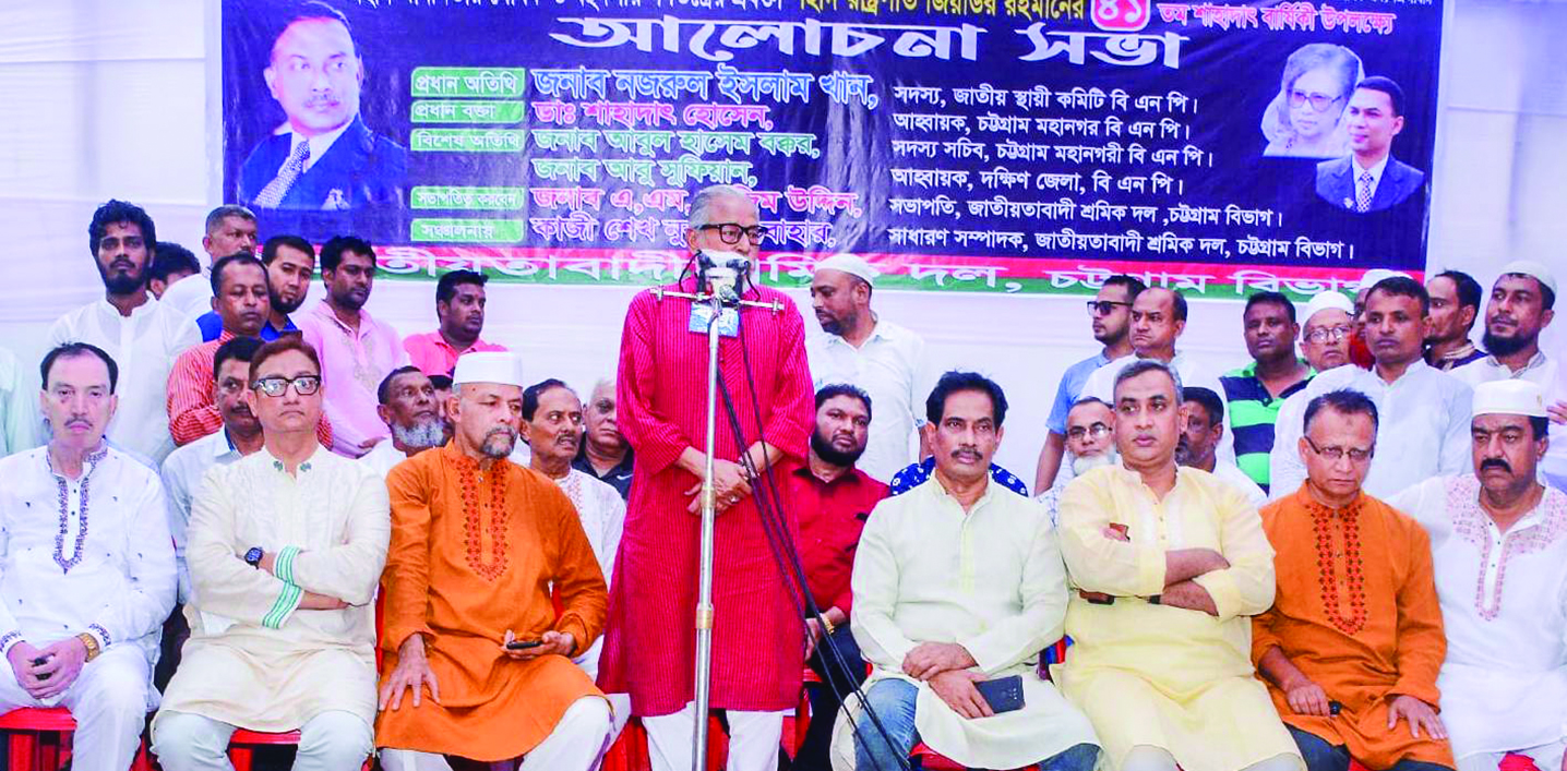 বিএনপি যাতে নির্দলীয় নিরপেক্ষ সরকারের দাবি আদায় করতে না পারে সেজন্য ‘মিথ্যা ও বানোয়াট’ মামলায় চেয়ারপার্সন বেগম খালেদা জিয়াকে বন্দী করে রাখা হয়েছে বলে দাবি করেছেন দলটির স্থায়ী কমিটির সদস্য নজরুল ইসলাম খান। তিনি বলেন, বেগম জিয়া বাইরে থাকলে জোর করে আওয়ামী লীগ ক্ষমতায় টিকে থাকতে পারতো না এবং ভোট চুরি করতে পারবে না। গতকাল শুক্রবার বিকেলে নুর আহমদ সড়কের নাসিমন ভবনস্থ দলীয় কার্যালয়ে বিএনপির প্রতিষ্ঠাতা শহীদ রাষ্ট্রপতি জিয়াউর রহমান বীর উত্তমের ৪১তম শাহাদাত বার্ষিকী উপলক্ষে চট্টগ্রাম বিভাগীয় শ্রমিকদল আয়োজিত আলোচনা সভায় প্রধান অতিথির বক্তব্যে তিনি এসব কথা বলেন। এতে প্রধান বক্তা ছিলেন নগর বিএনপির আহবায়ক ডা. শাহাদাত হোসেন। বিশেষ অতিথি ছিলেন নগর বিএনপির সদস্য সচিব আবুল হাশেম বক্কর। চট্টগ্রাম বিভাগীয় শ্রমিক দলের সভাপতি ও কেন্দ্রীয় বিএনপির শ্রম বিষয়ক সম্পাদক এ এম নাজিম উদ্দিনের সভাপতিত্বে সঞ্চালনা করেন বিভাগীয় শ্রমিকদলের সাধারণ সম্পাদক শেখ নূর উল্লাহ বাহার।
