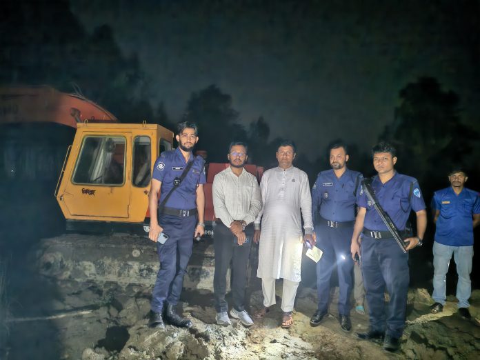 অভিযানকালে সরেজমিনে দেখা যায়, বৈলছড়ি ইউনিয়নের চেচুরিয়া ৮ নম্বর ওয়ার্ডের বাসিন্দা শফিকুর রহমান এক্সক্যাভেটর ব্যবহার করে আদর্শ গ্রাম খালের দুই পাশ সম্পূর্ণরূপে মাটি দিয়ে বাঁধ নির্মাণ করে খালের প্রাকৃতিক প্রবাহপথ বন্ধ করে দিয়েছেন। একই সঙ্গে খালপাড়ের সরকারি জমি থেকে অবৈধভাবে মাটি কেটে সেখানে মৎস্য প্রকল্প স্থাপনের কার্যক্রম চালিয়ে যাচ্ছিলেন, যা পরিবেশ ও জনস্বার্থের জন্য মারাত্মক হুমকি হিসেবে বিবেচিত হয়।