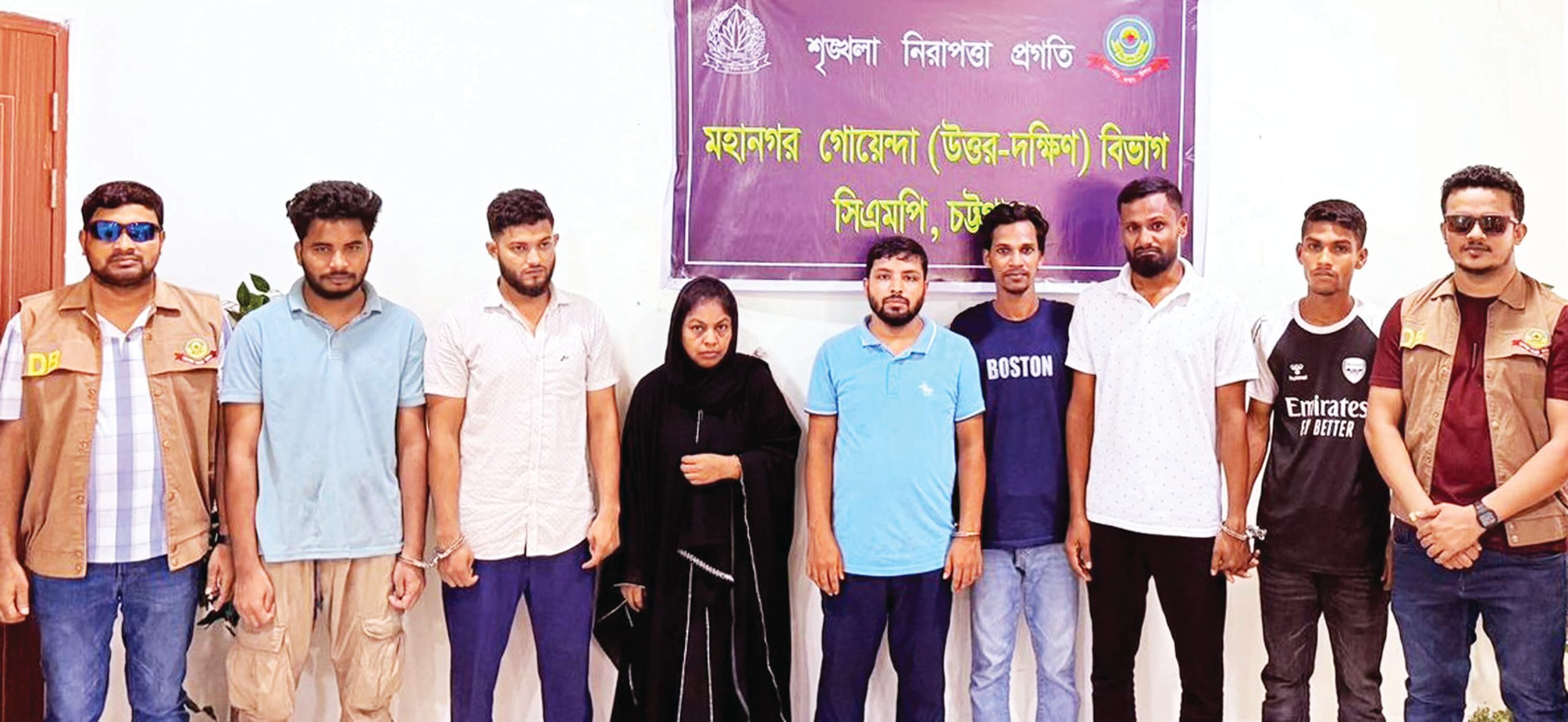 গ্রেপ্তারকৃতরা হল– আব্দুল মতিন রাসেল (৩৫), আশরাফুল ইসলাম সাহেদ (২৯), মমিন (২৮), শারমিন আক্তার রিমা (৩০), নুর মোহাম্মদ সাব্বির রকি (২২), মো. রোবেল হোসেন (৩১) ও মো. ফয়সাল (২২)।