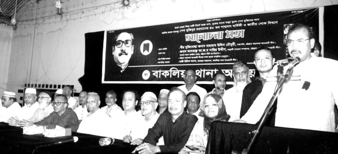 তিনি গতকাল শুক্রবার বঙ্গবন্ধুর ৪৮ তম শাহাদাত বার্ষিকী ও জাতীয় শোক দিবস পালনোপলক্ষে বাকলিয়া থানা আওয়ামী লীগ আয়োজিত কুইন্স কমিউনিটি সেন্টারে অনুষ্ঠিত আলোচনা সভায় প্রধান অতিথির বক্তব্যে একথা বলেন। প্রধান বক্তার বক্তব্যে চট্টগ্রাম মহানগর আওয়ামী লীগের সাধারণ সম্পাদক ও সাবেক সিটি মেয়র আ.জ.ম. নাছির উদ্দীন বলেছেন, আন্দোলন সংগ্রামের নামে যারা সরকারের পতন চায় তাদের নিজেদের পতনই অনিবার্য। কেননা ইতিহাস বলে আওয়ামী লীগকে কখনো আন্দোলনের নামে ঠেকানো যায় নি। তাই ভয় দেখিয়ে লাভ নাই। আমরা ভয়কে বার বার জয় করে ক্ষমতার পাদপ্রদীপে এসেছি। তাই আমাদের শক্তি তৃণমূল। বিশেষ অতিথির বক্তব্যে শিক্ষা উপমন্ত্রী মহিবুল হাসান চৌধুরী নওফেল এমপি বলেছেন, বঙ্গবন্ধু জীবদ্দশায় সমগ্র পৃথিবীর অবাক বিস্ময়ে পরিণত হয়েছিলেন। তার অঙ্গুলি হেলনে ৩০ লক্ষ বাঙালি আত্মহুতি দিয়ে বাংলাদেশের স্বাধীনতা ছিনিয়ে এনেছে। এটাই ছিল একাত্তরের ঘাতক ও পরাজিত শক্তিদের চোখে বড় অপরাধ। একারণেই দেশী ও আন্তর্জাতিক শক্তির প্রত্যক্ষ যোগসাজসে বঙ্গবন্ধুকে স্বপরিবারে নৃসংশভাবে হত্যা করা হয়েছিল। বাকলিয়া থানা আওয়ামী লীগের ভারপ্রাপ্ত আহ্বায়ক সিদ্দিক আলমের সভাপতিত্বে ও এস.এম মোক্তার হোসেন লিটনের সঞ্চালনায় অনুষ্ঠিত শোক সভায় আরো বক্তব্য রাখেন, চট্টগ্রাম মহানগর আওয়ামী লীগের সহ সভাপতি এড. ইব্রাহিম হোসেন চৌধুরী, আলতাফ হোসেন চৌধুরী বাচ্চু।