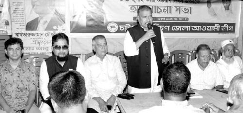গতকাল রবিবার সংগঠনের আন্দরকিল্লাস্থ কার্যালয়ে আওয়ামী লীগের সভানেত্রী, প্রধানমন্ত্রী শেখ হাসিনার কারাবন্দী দিবস উপলক্ষ্যে চট্টগ্রাম দক্ষিণ জেলা আওয়ামী লীগ আয়োজিত আলোচনা সভায় সভাপতির বক্তব্যে তিনি এসব কথা বলেন। সভায় চট্টগ্রাম দক্ষিণ জেলা আওয়ামী লীগ সাধারণ সম্পাদক মফিজুর রহমান বলেন, শেখ হাসিনা সময়ের পরীক্ষায় উত্তীর্ণ নেত্রী। শেখ হাসিনার দূরদর্শিতা এবং কৌশলের কাছে জামাতবিএনপি ও দেশীবিদেশীর চক্রান্ত ব্যর্থ হয়েছিল। সভায় বক্তব্য রাখেন, প্রদীপ দাশ, এড. জহির উদ্দিন, খোরশেদ আলম, নুুরুল আবছার চৌধুরী, মোস্তাক আহমদ আঙ্গুর, অধ্যাপক পার্থ সারথী চৌধুরী, নাছির উদ্দিন, চৌধুরী আবুল কালাম আজাদ, নঈমুল হক পারভেজ, সুরেশ দাশ, মাহবুবুর রহমান চৌধুরী, মাঈনুদ্দিন চৌধুরী, নুরুল হুদা, অরুণ সেন, আবদুল মোনাফ, মাহবুব আলম, জয়নাল আবেদীন, সেলিম উদ্দিন, মো. মহিউদ্দিন প্রমুখ।