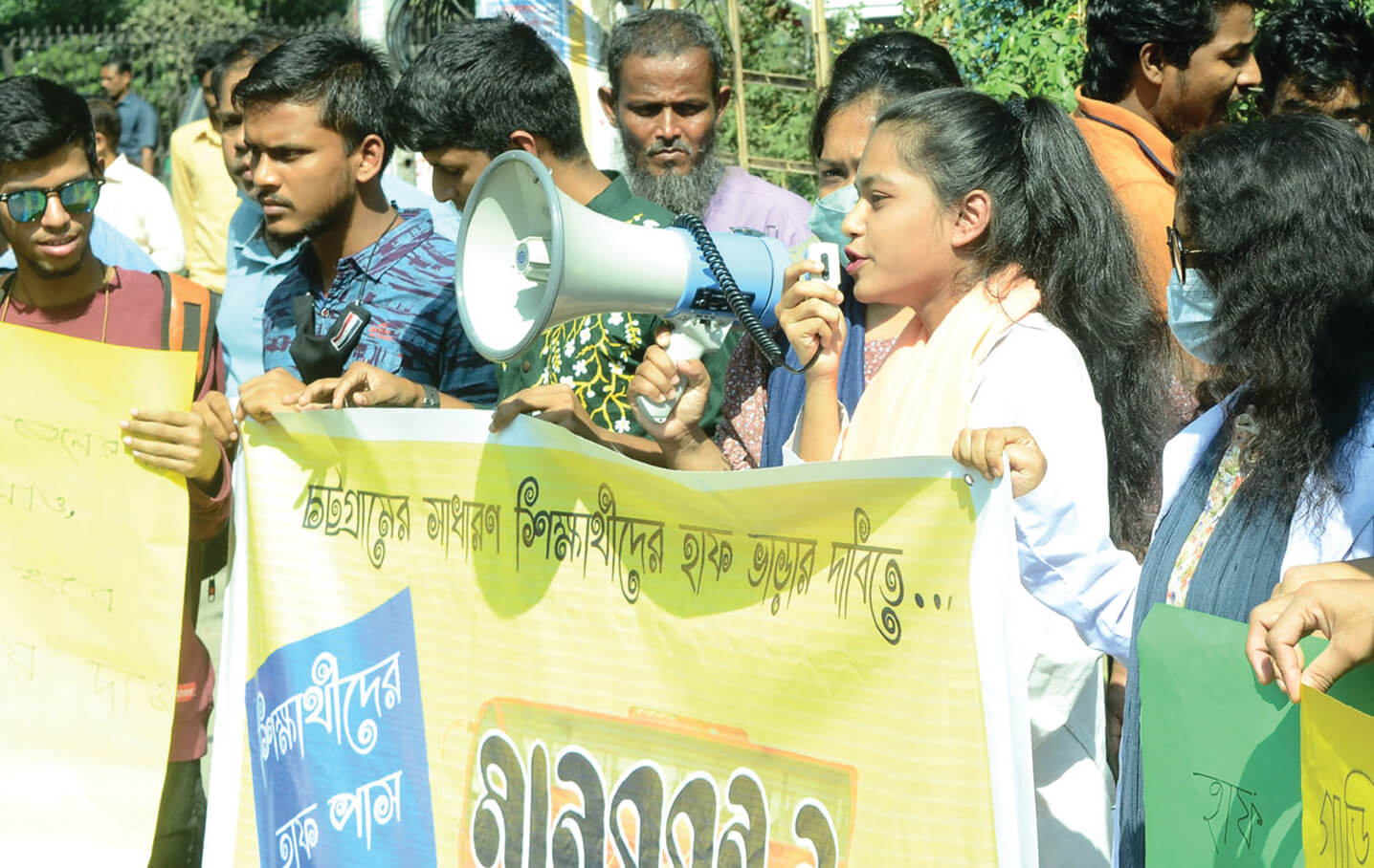 গণপরিবহনে হাফ ভাড়ার দাবিতে নগরীতে সমাবেশ ও বিক্ষোভ মিছিল করেছে সাধারণ শিক্ষার্থীরা। গতকাল মঙ্গলবার দুপুর সাড়ে ১২টার দিকে ২ নম্বর গেট এলাকায় সাধারণ শিক্ষার্থীদের ব্যানারে এ সমাবেশ অনুষ্ঠিত হয়। সেখানে বক্তব্য রাখেন চট্টগ্রামের বিভিন্ন প্রতিষ্ঠানের শিক্ষার্থীরা। পরে সমাবেশস্থল থেকে বিক্ষোভ মিছিল জিইসির মোড়ে গিয়ে শেষ হয়। সিএমপির উপ-পুলিশ কমিশনার (উত্তর) মোখলেসুর রহমান আজাদীকে বলেন, ২ নম্বর গেট মোড়ে শিক্ষার্থীরা সকালে আন্দোলন করেছে। শান্তিপূর্ণভাবে সমাবেশ ও মিছিল শেষ হয়েছে। অপ্রীতিকর ঘটনা এড়াতে অতিরিক্ত পুলিশ মোতায়েন করা হয়েছিল। শিক্ষার্থীরা গণপরিবহনে হাফ ভাড়া সুবিধার পাওয়ার দাবি জানিয়েছেন। সংশ্লিষ্ট কর্তৃপক্ষ তাদের দাবির বিষয়টি বিবেচনা করে দেখবে।