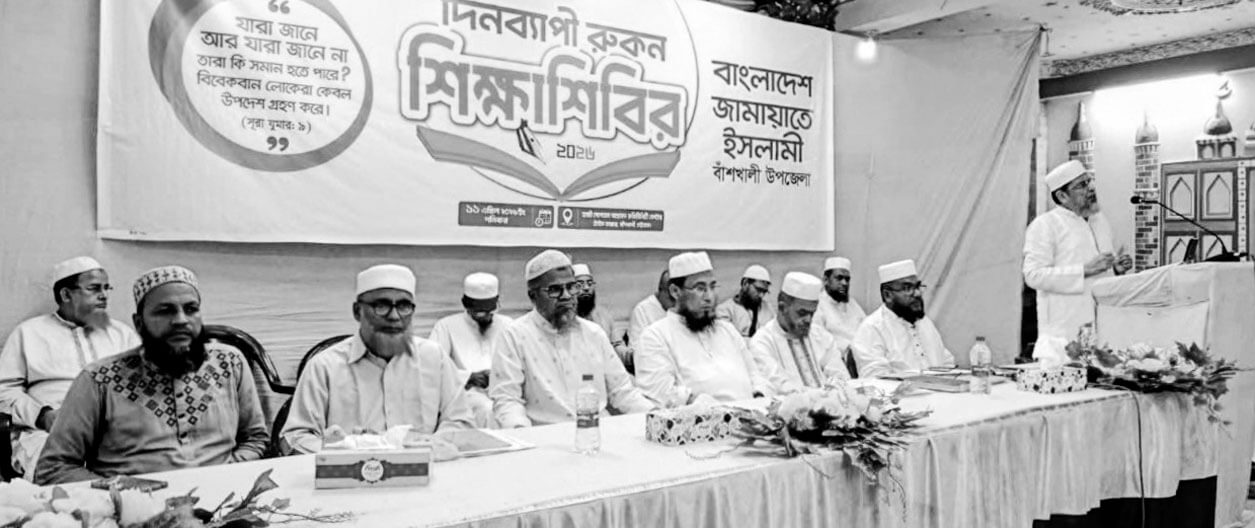 বাঁশখালী উপজেলা জামায়াতের উদ্যোগে সম্প্রতি টাইম বাজারস্থ হাজী সোলতান আহমদ কমিউনিটি সেন্টারে দিনব্যাপী রুকন শিক্ষাশিবিরে প্রধান অতিথির বক্তব্যে তিনি এসব কথা বলেন। বাঁশখালী উপজেলা জামায়াতের আমির অধ্যক্ষ মাওলানা মুহাম্মদ ইসমাইলের সভাপতিত্বে শিক্ষাশিবিরে বিশেষ অতিথি ছিলেন, অধ্যক্ষ মাওলানা জহিরুল ইসলাম এমপি, চট্টগ্রাম অঞ্চলের টিম সদস্য অধ্যাপক জাফর সাদেক, দক্ষিণ জেলার আমির আনোয়ারুল আলম চৌধুরী, মাওলানা আরেফে জামী। উপজেলা সেক্রেটারি অধ্যক্ষ মাওলানা আরিফুল্লাহর সঞ্চালনায় শিক্ষাশিবিরে আরও উপস্থিত ছিলেন পৌরসভা আমির অধ্যক্ষ মাওলানা আবু তাহের, উপজেলা নায়েবে আমির মাস্টার আবদুর রহিম ছানবী, মুহাম্মদ মহিউদ্দীন, মাওলানা শহীদুল্লাহ, মাওলানা সোলাইমান, আবু ছিদ্দিক, মর্তুজা আলী প্রমুখ। প্রেস বিজ্ঞপ্তি।