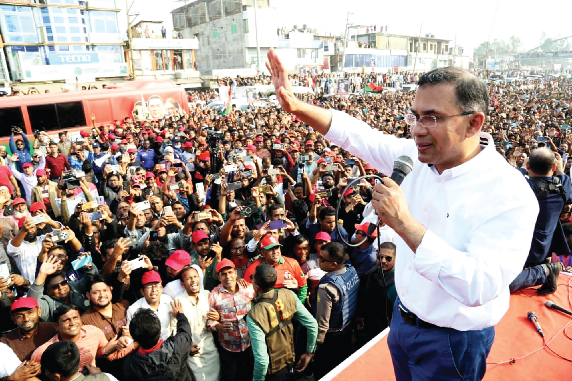 উপস্থিত জনতার উদ্দেশে তিনি বলেন, আমরা আমাদের পরিকল্পনা জানালাম, এখন আপনাদের পরিকল্পনা কী? জবাবে জনতা ‘ধানের শীষ’ বলে স্লোগান দিলে তিনি সবাইকে ফজরের নামাজ পড়েই ভোটকেন্দ্রে গিয়ে নিজেদের ভোটাধিকার প্রয়োগের আহ্বান জানান।