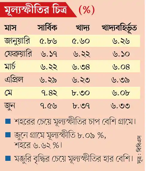 মাহফুজ কবির বলেন, মেগাসিটিতে খাদ্য পণ্যের চেয়ে বিভিন্ন খাদ্য বহির্ভূত পণ্যের মূল্যস্ফীতি মধ্যবিত্তদের বেশি নাকাল করেছে। গ্রামাঞ্চলে সামাজিক সুরক্ষাবেষ্টনী এবং ওএমএস চালু থাকায় মূল্যস্ফীতির প্রভাব কম পড়েছে। বিদ্যুৎ, সাবান, পরিষ্কারপরিচ্ছন্নতা, ব্যক্তিগত স্বাস্থ্যসামগ্রী, মশার কয়েল, স্প্রে, পোশাক, জুতার মতো খাদ্য বহির্ভূত পণ্যের দাম বৃদ্ধি, সেইসঙ্গে চাল, আটা, ডাল, বেকারি পণ্য, চিনি, মাছ, ডিম, দেশি মুরগি, ভোজ্য তেল, আমদানিকৃত ফল, চাকফি, স্থানীয় এবং আমদানিকৃত দুধ ও জ্বালানি তেলের দাম বাড়ার ফলে বাড়তি পরিবহন খরচকে সামগ্রিক মূল্যস্ফীতির হার বৃদ্ধির কারণ হিসেবে উল্লেখ করেন তিনি।