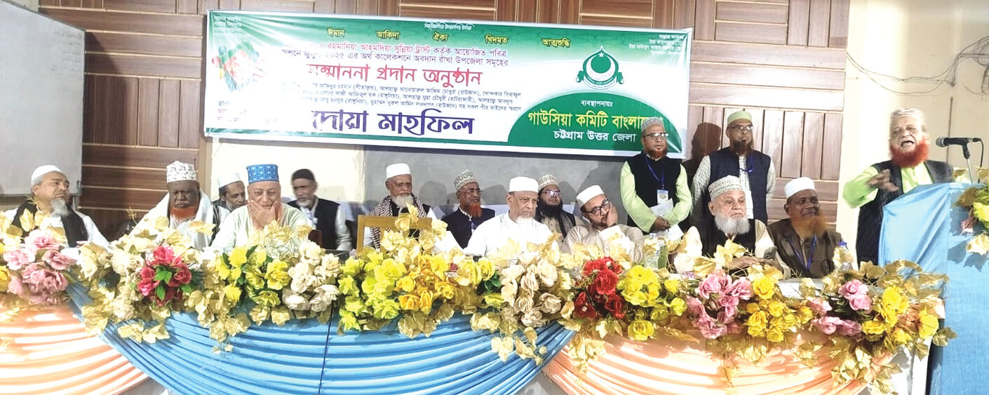 গাউসিয়া কমিটি বাংলাদেশ, চট্টগ্রাম উত্তর জেলার ওফাতপ্রাপ্ত সাবেক নেতৃবৃন্দের ্লস্মরণ সভায় আনজুমান ট্রাস্ট’র সেক্রেটারি জেনারেল আলহাজ মোহাম্মদ আনোয়ার হোসেন বলেছেন, গাউসিয়া কমিটি একটি আধ্যাত্মিক সংগঠন, যে সংগঠনের কর্মী ও সদস্যগণ আনজুমান ট্রাস্ট কর্তৃক সারা দেশে পরিচালিত দ্বীনি মাদ্রাসা সমূহের সার্বিক সহযোগিতায় নিরলসভাবে কাজ করে যাচ্ছেন। দ্বীনের সেবায় যারা কাজ করেন, তারা দুনিয়া ও আখিরাত উভয় জগতে সফলকাম। চট্টগ্রাম উত্তর জেলার সাবেক সভাপতি আলহাজ আমিনুর রহমান, আলহাজ্ব আনোয়ারুল আজিম চৌধুরী, আবদুস্ শুক্কুর, খোন্দকার সিরাজুল ইসলাম, মাওলানা কাজী আজিজুল হক, মুছা চৌধুরী, আবু মনছুর, নুরুল আমিন সওদাগর আনজুমান জামেয়ার জন্য বহু ত্যাগ স্বীকার করেছেন। তাঁরা আজীবন স্মরণীয় হয়ে থাকবেন। গত ২২ ডিসেম্বর সন্ধ্যা ৬টায় জামেয়া আহমদিয়া সুন্নিয়া কামিল মাদরাসা অডিটরিয়ামে আয়োজিত সভায় সভাপতিত্ব করেন চট্টগ্রাম উত্তর জেলা গাউসিয়া কমিটির আহ্বায়ক মাওলানা ইয়াসিন হোসাইন হায়দারী।