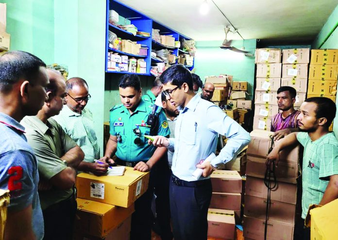 নগরীর কোতোয়ালী থানাধীন আমতল এলাকার রয়েল টাওয়ারের তৃতীয় তলার একটি গোডাউন থেকে ২৫ লাখ টাকার অনুমোদনহীন ফেসওয়াস জব্দ করেছে জেলা প্রশাসন। এসব ফেসওয়াস হিমালয়া নামের একটি কোম্পানির। গতকাল বুধবার জেলা প্রশাসনের নির্বাহী ম্যাজিস্ট্রেট প্রতীক দত্ত এ অভিযান পরিচালনা করেন। এ সময় গোডাউনের ম্যানেজার জমিল উদ্দীনকে এক লাখ টাকা জরিমানা করা হয়। নির্বাহী ম্যাজিস্ট্রেট প্রতীক দত্ত আজাদীকে বলেন, জব্দকৃত ফেসওয়াসগুলোর গায়ে উৎপাদনকারী প্রতিষ্ঠান হিসেবে হিমালয়া কোম্পানির নাম এবং ঠিকানা বিসিক শিল্প অঞ্চল, জামালপুর লেখা ছিল। কিন্তু এগুলোতে ছিল না বিএসটিআই এর কোনো লোগো। অভিযানের খবর পেয়ে হিমালয়ার চট্টগ্রাম অঞ্চলের প্রতিনিধি ঘটনাস্থলে আসে উল্লেখ করে ম্যাজিস্ট্রেট বলেন, তিনি ফেসওয়াসগুলোর কোনো বৈধ কাগজপত্র দেখাতে পারেন নাই। ভোক্তাকে প্রতারিত করার উদ্দেশ্যে ফেসওয়াসগুলোকে বিদেশি পণ্য হিসেবে বাজারজাত করার দুরভিসন্ধি নিয়ে পণ্যগুলোর গায়ে পণ্যের উপাদান এবং অন্যান্য তথ্য বাংলায় না লিখে ইংরেজিতে লেখা হয়। তিনি বলেন, বাংলাদেশে উৎপাদিত সকল পণ্য মোড়কজাত করার আগে বিএসটিআইয়ের অনুমোদন প্রয়োজন। সে অনুমোদনও তাদের ছিল না। এসব কারণে গোডাউনের ম্যানেজারকে এক লাখ টাকা জরিমানা করা হয়। অভিযানে সার্বিক সহযোগিতা করে কোতোয়ালী থানা পুলিশ ও বিএসটিআইয়ের প্রতিনিধি।
