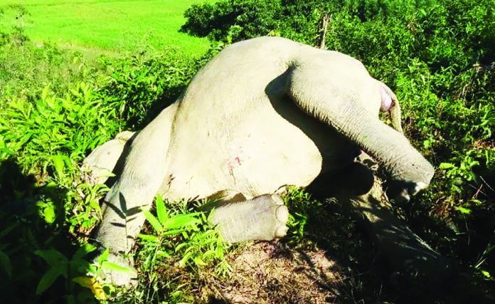 খুটাখালীর পূর্ণগ্রাম বনবিট কর্মকর্তা আবুল কালাম জানান,মঙ্গলবার ভোররাতে লামা উপজেলার ফাঁসিয়াখালী ইউনিয়নের টেরিঢেবা ক্ষুদ্র নৃ-গোষ্ঠী পাড়ার দু অং মার্মার ছেলে মংহ্লা মার্মা ও নাইক্ষ্যংছড়ি উপজেলার বাইশারী ইউনিয়নের কাইন্দার বিলের টুম্পা পাড়ার মে মং মার্মার ছেলে অং থোয়াই চিং মার্মা (৪৫) বন্য শূকর শিকারে অস্ত্র হাতে বের হয়। তারা সংরক্ষিত বনের ভেতর মিশ্র ফলের বাগান এলাকায় বন্য শূকর শিকার করতে গেলে সামনে পড়ে যায় ১২ থেকে ১৫ বছর বয়সের একটি মাদী হাতি। তখন তারা প্রাণে বাঁচতে ওই হাতির মাথা লক্ষ্য করে একটি গুলি ছুঁড়ে। সেই গুলিতে বিদ্ধ হয়ে মাটিতে লুটিয়ে পড়ে হাতিটি। তাৎক্ষণিক এই ঘটনায় মংহ্লা মার্মাকে আটক করা গেলেও অন্যজন পালিয়ে যায়। সে আটক হওয়া মংহ্লা মার্মার স্ত্রীর বড় ভাই।