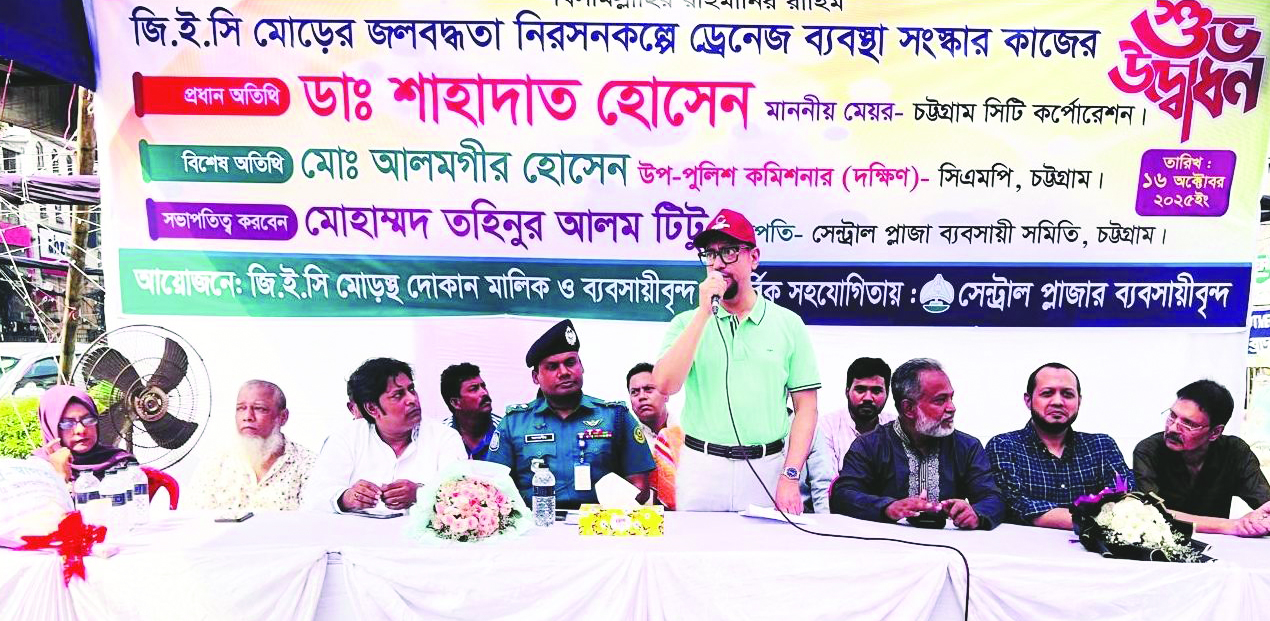 চট্টগ্রাম মহানগরের অন্যতম গুরুত্বপূর্ণ এলাকা জি.ই.সি মোড়ের জলাবদ্ধতা নিরসন এবং নগরবাসীর দীর্ঘদিনের ভোগান্তি লাঘবে ড্রেনেজ ব্যবস্থার সংস্কার কাজের শুভ উদ্বোধন করেছেন সিটি কর্পোরেশনের মেয়র ডা. শাহাদাত হোসেন। গতকাল বৃহস্পতিবার সকালে ১৫নং বাগমনিরাম ওয়ার্ডের জি.ই.সি মোড় সংলগ্ন সেন্ট্রাল প্লাজা মার্কেটের সামনে আরসিসি ড্রেন নির্মাণ কাজের উদ্বোধন করেন তিনি। উদ্বোধনী অনুষ্ঠানে সভাপতিত্ব করেন সেন্ট্রাল প্লাজা ব্যবসায়ী সমিতির সভাপতি মোহাম্মদ তহিনুর আলম টিটু। আয়োজনে ছিলেন জি.ই.সি মোড়স্থ দোকান মালিক ও ব্যবসায়ীবৃন্দ এবং সহযোগিতায় ছিলেন সেন্ট্রাল প্লাজার ব্যবসায়ী সমাজ।