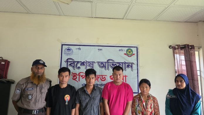 গ্রেপ্তাররা হলেন- আপ্রুমং মারমা (২৬), থুয়াইচিং মারমা (২৯), ওথাইইনু মারমা (৩০) এবং ওকরাইজা মারমা।
