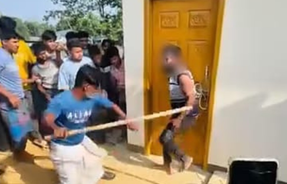 ভাইরাল ভিডিওতে দেখা যায়, এক যুবককে একটি ভবনের দরজার সঙ্গে দড়ি দিয়ে বেঁধে রাখা হয়েছে। তাঁকে ঘিরে ৫০ থেকে ৬০ জন স্থানীয় মানুষ দাঁড়িয়ে আছেন। এ সময় দুই থেকে তিনজন ব্যক্তি কাঠের গুঁড়ি ও লাঠি দিয়ে তাঁকে বেধড়ক মারধর করছেন।