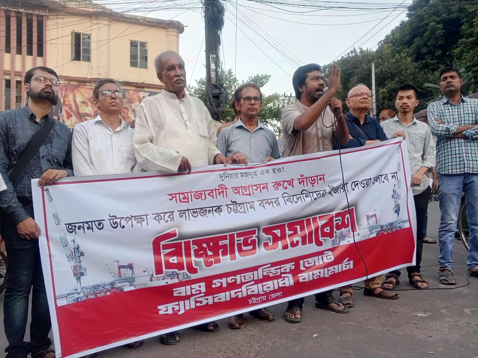 চট্টগ্রামে বাম গণতান্ত্রিক জোট ও ফ্যাসিবাদ বিরোধী বাম মোর্চার উদ্যোগে চট্টগ্রাম বন্দর বিদেশিদের ইজারা দেওয়ার প্রতিবাদে বিক্ষোভ সমাবেশ অনুষ্ঠিত হয়েছে। মঙ্গলবার (২৭ অক্টোবর) বিকেল ৪ টায় নগরের সিনেমা প্যালেস চত্বরে সমাবেশের সভাপতিত্ব করেন বাসদ চট্টগ্রাম জেলা শাখার ইনচার্জ আল কাদেরী জয়।