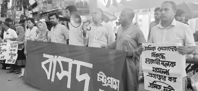 বাসদ সিলেট জেলা শাখার আহ্বায়ক ও সমাজতান্ত্রিক শ্রমিক ফ্রন্টের কেন্দ্রীয় নেতা আবু জাফর, জেলা সদস্য সচিব প্রণব পালসহ গ্রেপ্তারকৃত ৪ শ্রমিক নেতৃবৃন্দের নিঃশর্ত মুক্তির দাবিতে বাসদ চট্টগ্রাম জেলা শাখার সমাবেশ গতকাল বিকাল ৫টায় নিউমার্কেট মোড়ে অনুষ্ঠিত হয়। বাসদ চট্টগ্রাম জেলা শাখার ইনচার্জ আল কাদেরী জয়ের সভাপতিত্বে সমাবেশে বক্তব্য রাখেন সমাজতান্ত্রিক শ্রমিক ফ্রন্ট চট্টগ্রাম জেলা সভাপতি হেলাল উদ্দিন কবির, সাধারণ সম্পাদক আকরাম হোসেন, সমাজতান্ত্রিক মহিলা ফোরাম চট্টগ্রাম জেলা শাখার আহ্বায়ক জোবায়ের বীনা, সমাজতান্ত্রিক ছাত্র ফ্রন্ট কেন্দ্রীয় কমিটির সাধারণ সম্পাদক রায়হান উদ্দিন, চট্টগ্রাম নগর শাখার সভাপতি মিরাজ উদ্দিনসহ অন্যান্য নেতৃবৃন্দ। সমাবেশ সঞ্চালনা করেন বাসদ চট্টগ্রাম জেলা শাখার সদস্য আহমদ জসিম। সমাবেশে বক্তারা বলেন, ব্যাটারিচালিত রিকশা ও ইজিবাইকের নীতিমালা প্রণয়ন এবং রিকশা চালকদের প্রশিক্ষণ ও লাইসেন্সের দাবিতে কেন্দ্রীয় কর্মসূচির অংশ হিসাবে সিলেট শহরে শান্তিপূর্ণ সমাবেশের পর সংগঠনের কার্যালয় থেকে শ্রমিক ফ্রন্টের সিলেট জেলা আহ্বায়ক আবু জাফর, শ্রমিক ফ্রন্টের জেলা সদস্য সচিব প্রণব জ্যোতি পালসহ রিকশা শ্রমিক নেতা সৈকত ও রণিকে গ্রেপ্তার করে যে মামলায় তাদেরকে যুক্ত করে কারাগারে পাঠানো হয়, সেই মামলায় তাদের যুক্ত না থাকার বিষয়টি আদালতের সামনে তুলে ধরলে আদালত ২৯ সেপ্টেম্বর উপরোক্ত ৪ জনের জামিন মঞ্জুর করে। কিন্তু সিলেট মহানগর পুলিশ প্রশাসন ঐদিনই তাদের নামে আরো দুটি মামলা দায়ের করে সেই মামলায় তাদের গ্রেপ্তার দেখিয়েছে।