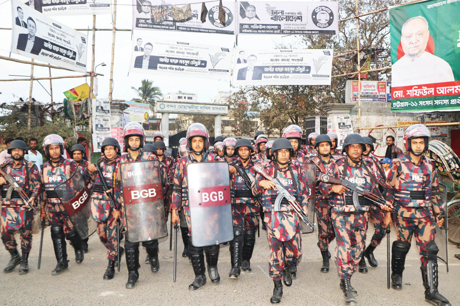 বিজিবির রিজিয়ন সদর দপ্তর চট্টগ্রামের পরিচালক (অপারেশন) লে. কর্নেল মো. মাহামুদুল হাসান জানান, নির্বাচনকালীন সময়ে যে কোনো ধরনের অপ্রীতিকর ঘটনা প্রতিরোধ এবং জনসাধারণের জানমালের নিরাপত্তা নিশ্চিত করার লক্ষ্যে গতকাল থেকে চট্টগ্রাম জেলার বিভিন্ন গুরুত্বপূর্ণ এলাকায় বিজিবি সদস্যদের নিয়মিত টহল কার্যক্রম শুরু হয়েছে। এই টহল কার্যক্রমের মাধ্যমে স্থানীয় প্রশাসনের সঙ্গে সমন্বয় করে সার্বিক আইনশৃঙ্খলা পরিস্থিতি নিয়ন্ত্রণে রাখা হবে এবং নির্বাচন সুষ্ঠু, শান্তিপূর্ণ ও নিরপেক্ষভাবে সম্পন্ন করতে প্রয়োজনীয় নিরাপত্তা ব্যবস্থা গ্রহণ করা হচ্ছে। চট্টগ্রামের ১৬ সংসদীয় আসনে বিএনপি, জামায়াতে ইসলামী, এনসিপি, এলডিপি ও জাতীয় পার্টিসহ ২৫ রাজনৈতিক দলের ১১৫ জন প্রার্থী আসন্ন ত্রয়োদশ জাতীয় সংসদ নির্বাচনে প্রতিদ্বন্দ্বিতা করছেন।