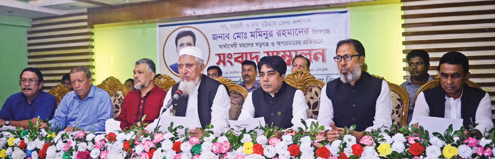 বাংলাদেশ উপজেলা পরিষদ অ্যাসোসিয়েশন চট্টগ্রাম বিভাগের সভাপতি ও রাউজান উপজেলা পরিষদের চেয়ারম্যান এ কে এম এহেছানুল হায়দার চৌধুরী বাবুল বলেছেন, চট্টগ্রামের দক্ষ ও যোগ্য জেলা প্রশাসক (ডিসি) মোহাম্মদ মমিনুর রহমানের বিরুদ্ধে উন্নয়ন বিরোধী স্বার্থান্বেষী মহলের ষড়যন্ত্র সফল হয়নি, আরও অনেকদূর এগিয়ে যাবেন তিনি। সকলের সম্মিলিত উদ্যোগে ডিসির বিরুদ্ধে অপপ্রচারকারী স্বার্থান্বেষী মহল ও চিহ্নিত ভূমিদস্যুদের সকল ষড়যন্ত্র রুখে দেয়া হবে। গতকাল বৃহস্পতিবার সকাল ১১টায় চট্টগ্রাম প্রেস ক্লাবের ইঞ্জিনিয়ার আব্দুল খালেক মিলনায়তনে উপজেলা পরিষদ অ্যাসোসিয়েশন চট্টগ্রাম জেলা ও বিভাগ কর্তৃক চট্টগ্রাম জেলা প্রশাসকের বিরুদ্ধে অপপ্রচারের প্রতিবাদে আয়োজিত সংবাদ সম্মেলনে তিনি এসব কথা বলেন। তিনি আরও বলেন, চট্টগ্রামে সরকারের উন্নয়ন কর্মকাণ্ড বাধাগ্রস্ত করতে একটি চিহ্নিত মহল ও ভূমিদস্যুর দল ডিসি’র বিরুদ্ধে মিথ্যা প্রচারণা ছড়াচ্ছে। চট্টগ্রামবাসীর স্বার্থে নানা সাহসী পদক্ষেপের কারণে সংঘবদ্ধ একটি প্রভাবশালী ও বিভিন্ন অবৈধ কাজের সাথে জড়িত চক্র তাঁর প্রতি রুষ্ট। সম্প্রতি জঙ্গল সলিমপুরে ৩ হাজার ১’শ একর সরকারি খাসজমি উদ্ধারে তাঁর ভূমিকা দৃশ্যমান। গত ১৫ সেপ্টেম্বর জেলা পরিষদ নির্বাচনের মনোনয়ন পত্র দাখিলের পর মূলত মুসলিম ধর্মীয় বিধান মেনে মোনাজাতে শামিল হয়েছিলেন জেলা প্রশাসক ও তৎকালীন রিটার্নিং কর্মকর্তা মোহাম্মদ মমিনুর রহমান। মোনাজাত পরিচালনাকারীর বক্তব্যের সঙ্গে জেলা প্রশাসক কোনভাবে সম্পৃক্ত নন।