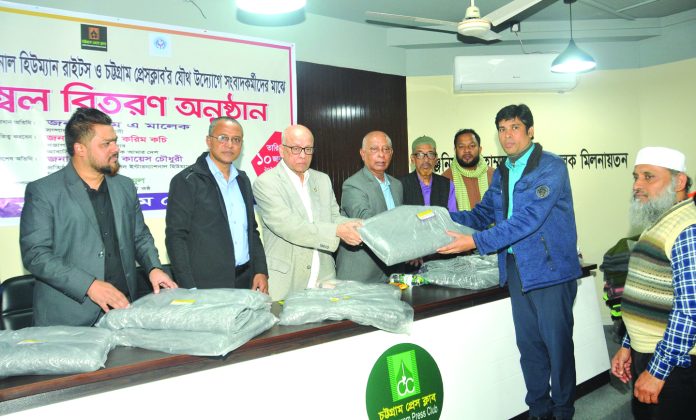 চট্টগ্রাম প্রেস ক্লাবের কর্মকর্তা–কর্মচারী ও গণমাধ্যম কর্মচারীদের মাঝে কম্বল বিতরণ করা হয়েছে। গতকাল শনিবার চট্টগ্রাম প্রেস ক্লাবের ইঞ্জিনিয়ার আবদুল খালেক মিলনায়তনে এ শীতবস্ত্র বিতরণ করা হয়। চট্টগ্রাম প্রেস ক্লাব ও পিস অ্যান্ড পিস ইন্টারন্যাশনাল হিউম্যান রাইটসের যৌথ উদ্যোগে অনুষ্ঠানে সভাপতিত্ব করেন প্রেস ক্লাবের সভাপতি জাহিদুল করিম কচি। অনুষ্ঠান সঞ্চালনা করেন মুহাম্মদ আজাদ। শুভেচ্ছা বক্তব্য দেন পিস অ্যান্ড পিস ইন্টারন্যাশনাল হিউম্যান রাইটসের সহসভাপতি হেলাল সিকদার এবং সোনালী কণ্ঠের ব্যুরো প্রধান প্রণয় দাশ গুপ্ত শিমুল।