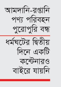 অপরদিকে বেসরকারি আইসিডি এবং বিভিন্ন কারখানা থেকে রপ্তানি পণ্য বন্দরে পৌঁছানো সম্ভব না হওয়ায় কন্টেনার রেখে জাহাজ নোঙর তোলার পরিস্থিতি তৈরি হচ্ছে। এতে রপ্তানিকারকদের বড় ক্ষতির মুখে পড়তে হবে বলে শঙ্কা প্রকাশ করা হয়েছে।