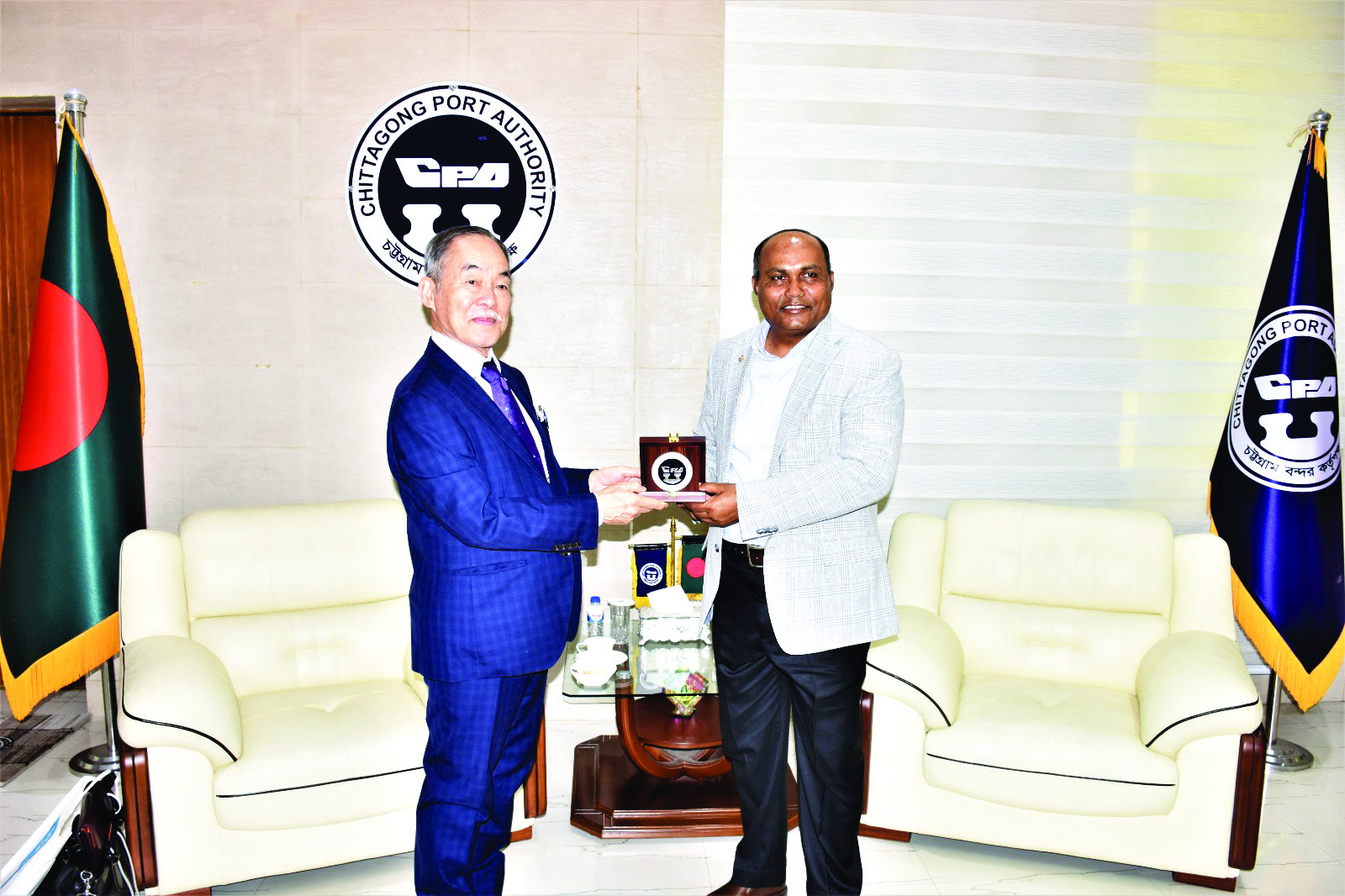 জাপান সরকারের হাইড্রোগ্রাফি এন্ড ওশানোগ্রাফির বিশেষজ্ঞ দল চট্টগ্রাম বন্দর পরিদর্শনে এসেছেন। ৫ দিনের সরকারি সফরের অংশ হিসেবে বিশেষজ্ঞ দলটি চট্টগ্রাম বন্দর পরিদর্শন করছেন। চট্টগ্রাম বন্দরে পৌঁছার পর জাপানি বিশেষজ্ঞ দল গতকাল বুধবার সকালে চট্টগ্রাম বন্দর কর্তৃপক্ষের চেয়ারম্যান রিয়ার এডমিরাল এস এম মনিরুজ্জামানের সাথে সৌজন্য সাক্ষাতে মিলিত হন। বন্দর চেয়ারম্যান প্রতিনিধিদলকে চট্টগ্রাম বন্দরে স্বাগত জানান এবং বাংলাদেশ জাপানের সৌহার্দ্যপূর্ণ সম্পর্ককে নতুন উচ্চতায় নেওয়ার দৃঢ় প্রত্যয় ব্যক্ত করেন। তিনি বন্দরের কর্ণফুলী চ্যানেল ও বহিঃ চ্যানেলের নাব্যতা রক্ষার্থে হাইড্রোগ্রাফি বিষয়ে করণীয়, চ্যানেলের উন্নয়ন ও সম্প্রসারণে প্রতিনিধি দলের সার্বিক সহযোগিতা কামনা করেন। বন্দর চ্যানেলের বর্তমান অবস্থা সম্পর্কে প্রতিনিধি দলকে অবহিত করেন এবং চ্যানেলের উন্নয়ন ও সম্প্রসারণে প্রতিনিধিদলের সার্বিক পরার্মশ ও সহযোগিতা কামনা করেন। তিনি চট্টগ্রাম বন্দরের সাম্প্রতিক হ্যান্ডলিং রেকর্ড, জাহাজের টার্ন এরাউন্ড টাইম হ্রাস, ডুয়েল টাইম হ্রাস, পরিচালনাগত সক্ষমতা ও দক্ষতা, বিভিন্ন উন্নয়ন প্রকল্প, ডিজিটাইজেশন, নিরাপত্তা ব্যবস্থার উন্নতি প্রভৃতি বিষয়ে প্রতিনিধি দলকে অবগত করলে তারা বন্দরের সাফল্যে সন্তোষ প্রকাশ করেন। প্রতিনিধি দল চট্টগ্রাম বন্দরের ভবিষ্যৎ উন্নয়নে সার্বিক সহযোগিতা প্রদানের আশ্বাস দেন।