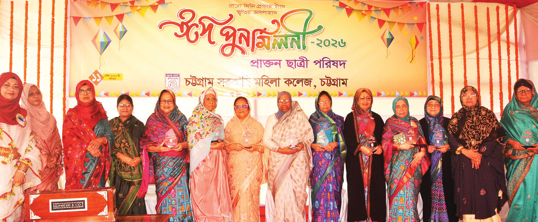 নানা আয়োজনে চট্টগ্রাম সরকারি মহিলা কলেজের প্রাক্তন ছাত্রী পরিষদের উদ্যোগে ঈদ পুনর্মিলনী ও প্রাক্তন ছাত্রী সংবর্ধনা অনুষ্ঠান অনুষ্ঠিত হয়েছে। গতকাল শনিবার সকালে বেলুন ও ফেস্টুন উড়িয়ে দিনব্যাপী এই অনুষ্ঠানের উদ্বোধন করা হয়। প্রাক্তন ছাত্রী পরিষদের সভাপতি, কলেজের প্রাক্তন উপাধ্যক্ষ প্রফেসর সালমা রহমানের সভাপতিত্বে অনুষ্ঠানে সংগঠনের সম্পাদক এবং কলেজের দর্শন বিভাগের প্রাক্তন বিভাগীয় প্রধান প্রফেসর নিলূফার আকতার, সংগঠনের সহ–সভাপতি এবং কলেজের উপাধ্যক্ষ প্রফেসর শাহানাজ বেগম বক্তব্য রাখেন।