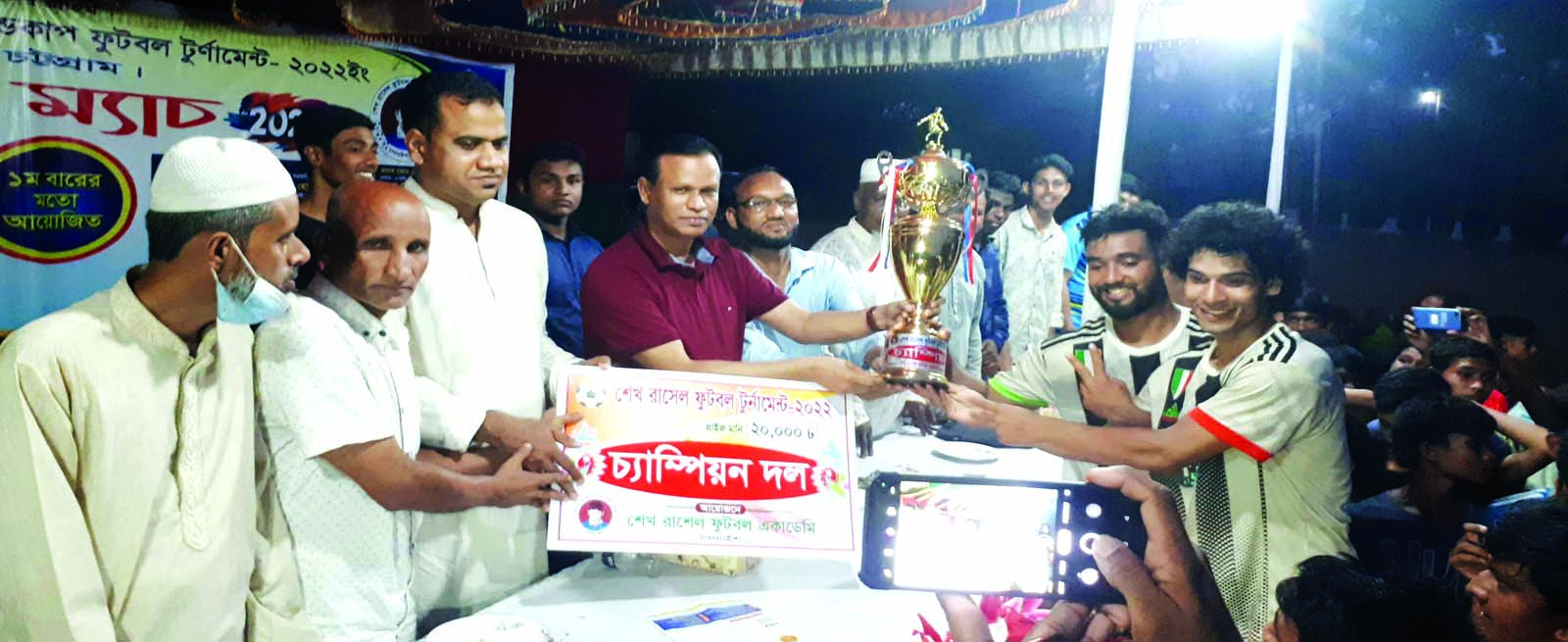 চন্দনাইশ শেখ রাসেল ফুটবল একাডেমি আয়োজিত ফুটবল টুর্নামেন্টের ফাইনাল খেলা গত শনিবার গাছবাড়িয়া স্টেডিয়ামে অনুষ্ঠিত হয়। এতে কর্ণফুলীর বড়ওঠান ক্রীড়া একাডেমি ২-১ গোলে আনোয়ারা ফুটবল একাডেমিকে পরাজিত করে চ্যাম্পিয়ন হয়। খেলায় ম্যান অব দ্যা ম্যাচ নির্বাচিত হন বিজয়ী দলের মো. বেলাল। ফাইনাল খেলার উদ্বোধন করেন মো. আলমগীর। লায়ন রফিকুল ইসলামের সভাপতিত্বে পুরস্কার বিতরণী অনুষ্ঠানে প্রধান অতিথি ছিলেন রিহ্যাব চট্টগ্রাম চ্যাপ্টারের প্রেসিডেন্ট আবদুল কৈয়ুম চৌধুরী। বিশেষ অতিথি ছিলেন চন্দনাইশ প্রেস ক্লাবের সভাপতি এড. মো. দেলোয়ার হোসেন। আলোচনায় অংশ নেন মাস্টার আবুল বশর, মাস্টার নাজিম উদ্দীন, এনামুল হক চৌধুরী, মো. হোসেন, চৌধুরী আমীর মো. ফোরকান প্রমুখ।