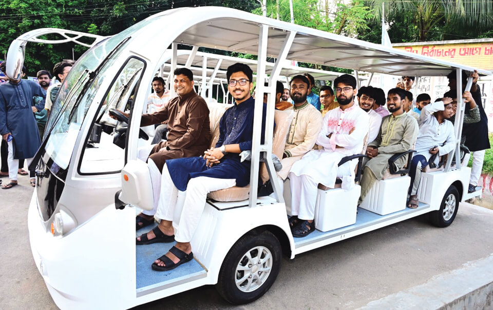 চট্টগ্রাম বিশ্ববিদ্যালয় (চবি) শিক্ষার্থীদের ক্যাম্পাসে অভ্যন্তরীণ যাতায়াত সমস্যা নিরসনে নতুনভাবে আরও ৬টি ই–কার চালু করা হয়েছে। গতকাল শুক্রবার বিকাল ৪টায় বিশ্ববিদ্যালয়ের স্মরণ চত্বরে নতুন ই–কারগুলোর উদ্বোধন করেন বিশ্ববিদ্যালয়ের উপ–উপাচার্য (প্রশাসন) অধ্যাপক ড. মো. কামাল উদ্দিন। এর মাধ্যমে বর্তমানে ক্যাম্পাসে মোট ১২টি ই–কার চলাচল করছে। বিষয়টি নিশ্চিত করে চাকসুর যোগাযোগ ও আবাসন সম্পাদক ইসহাক ভূঁঞা বলেন, বিশ্ববিদ্যালয় ক্যাম্পাসে আরো ৬টি ই–কার যুক্ত করা হয়েছে। অনেক শিক্ষার্থী ই–কারের ভাড়া কমানোর দাবি জানিয়েছেন। বিষয়টি নিয়ে আমরা শীঘ্রই বিশ্ববিদ্যালয় প্রশাসনের সঙ্গে আলোচনায় বসব। যেসব হল, ফ্যাকাল্টি বা স্থানে ই–কারের চলাচল নেই সেসব জায়গায় নির্দিষ্ট রুট ও স্টপেজ নির্ধারণ করে ই–কার চলাচল নিশ্চিত করা হবে। এ বিষয়ে বিশ্ববিদ্যালয়ের উপ–উপাচার্ষ অধ্যাপক কামাল উদ্দিন বলেন, শিক্ষার্থীদের সুবিধার্থে আমরা ই–কারের সংখ্যা বৃদ্ধি করেছি। প্রয়োজনে ভবিষ্যতে আরও ই–কার সংযোজন করা হবে। যেসব স্থানে আগে ই–কার চলাচল করত না যেমন ফরেস্ট্রি, আইন অনুষদসহ অন্যান্য এলাকাতেও এখন ই–কার চলবে। এছাড়া, ১০ টাকার বেশি ভাড়া না নেওয়ার বিষয়েও নির্দেশনা দেওয়া হয়েছে। উল্লেখ্য, গত ১৯ আগস্ট পরীক্ষামূলকভাবে ৬টি ই–কার চালু করে বিশ্ববিদ্যালয় প্রশাসন। এখন শিক্ষার্থীদের যাতায়াতের সুবিধার্থে আরও ৬টি ই–কার যুক্ত করা হয়েছে। এখন থেকে শিক্ষার্থীদের যাতায়াতে কষ্ট লাঘব করতে চবি ক্যাম্পাসে একযোগে ১২টি ই–কার চলাচল করবে।